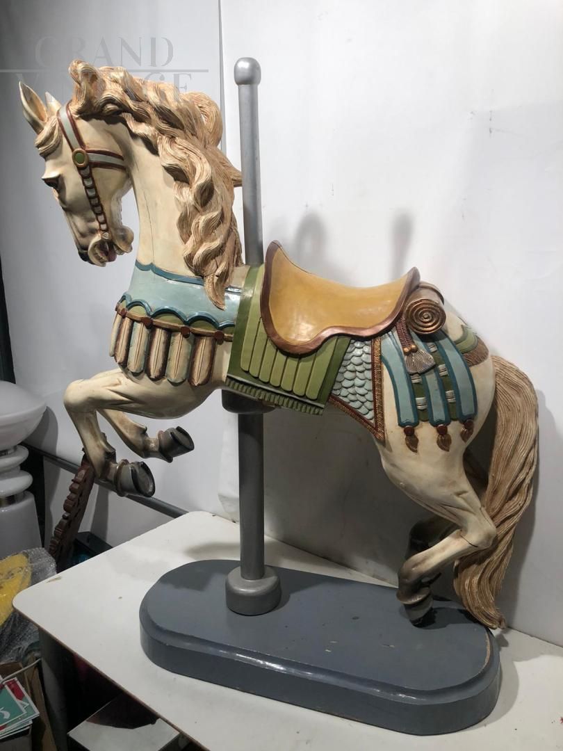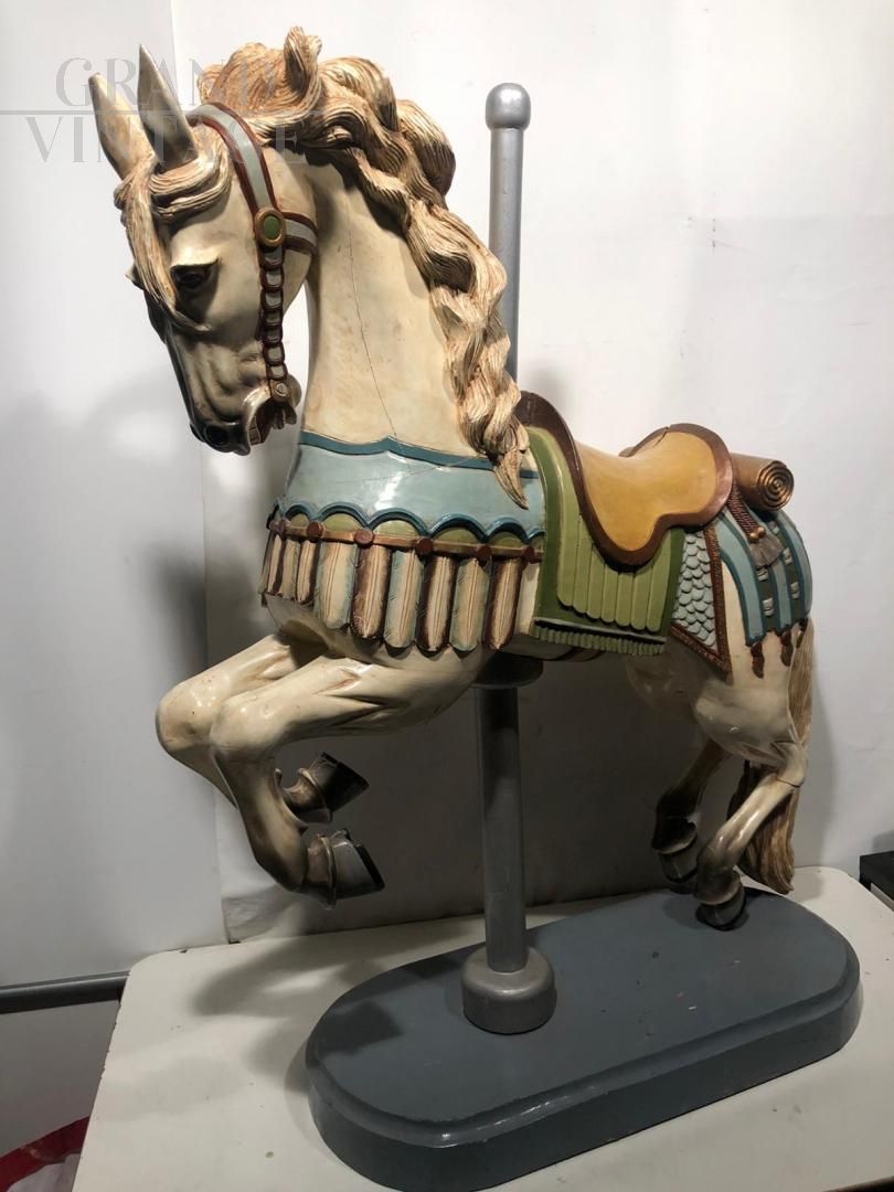 Cavallo da giostra antico in legno dipinto, oggetto per collezionisti raro ed introvabile. Il cavallino presenta le crepe del tempo in alcune parti, si consiglia il restauro.