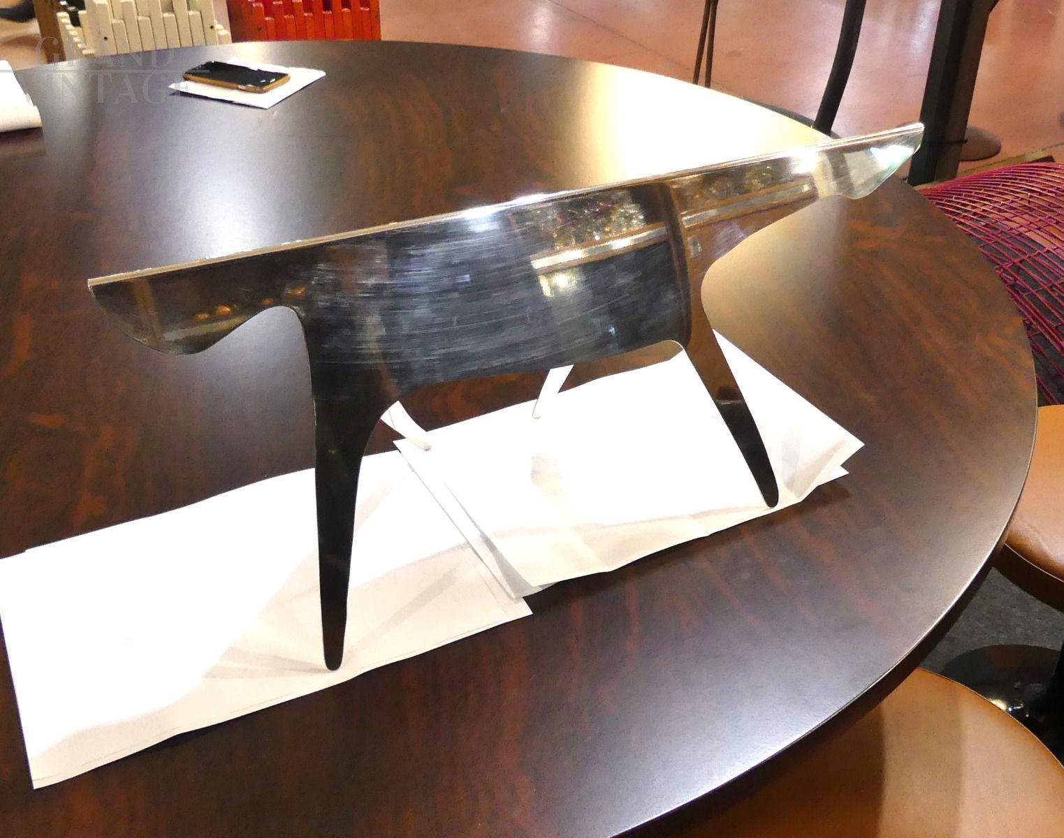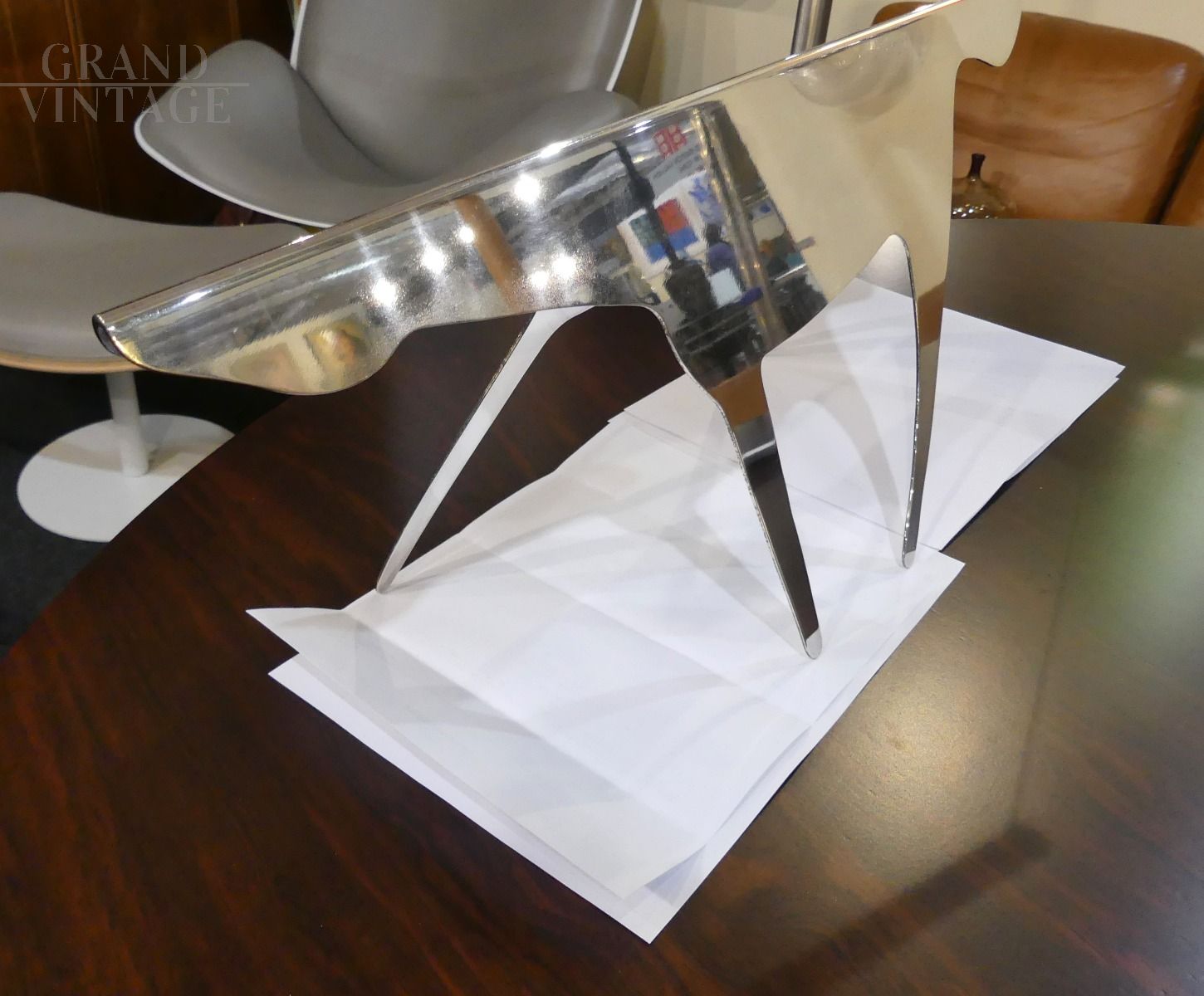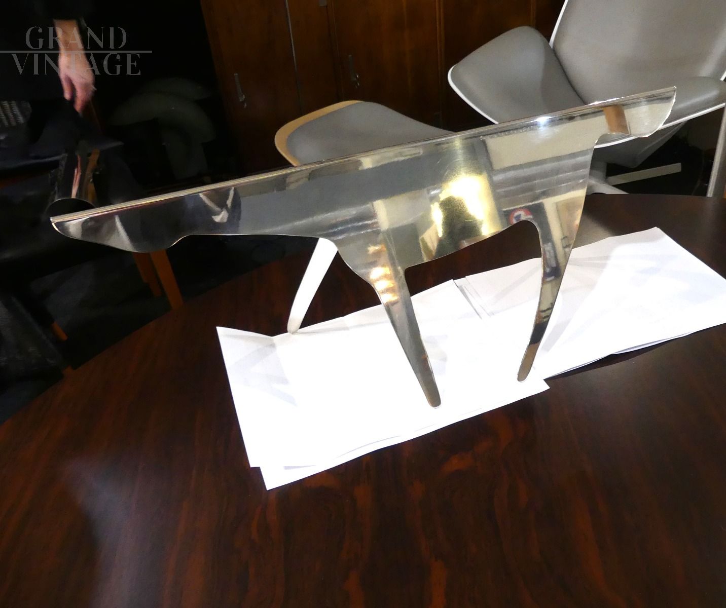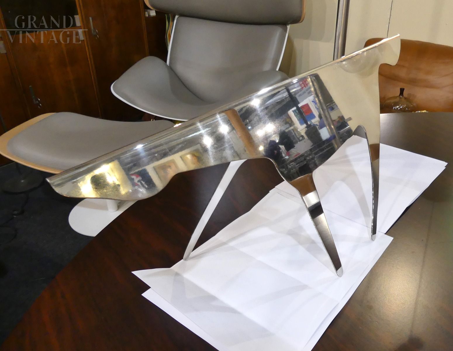 Bellissima scultura di Gio Ponti in lamina di metallo argentato raffigurante un cavallo stilizzato.
