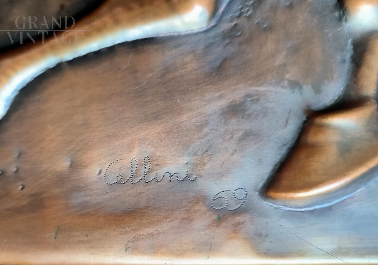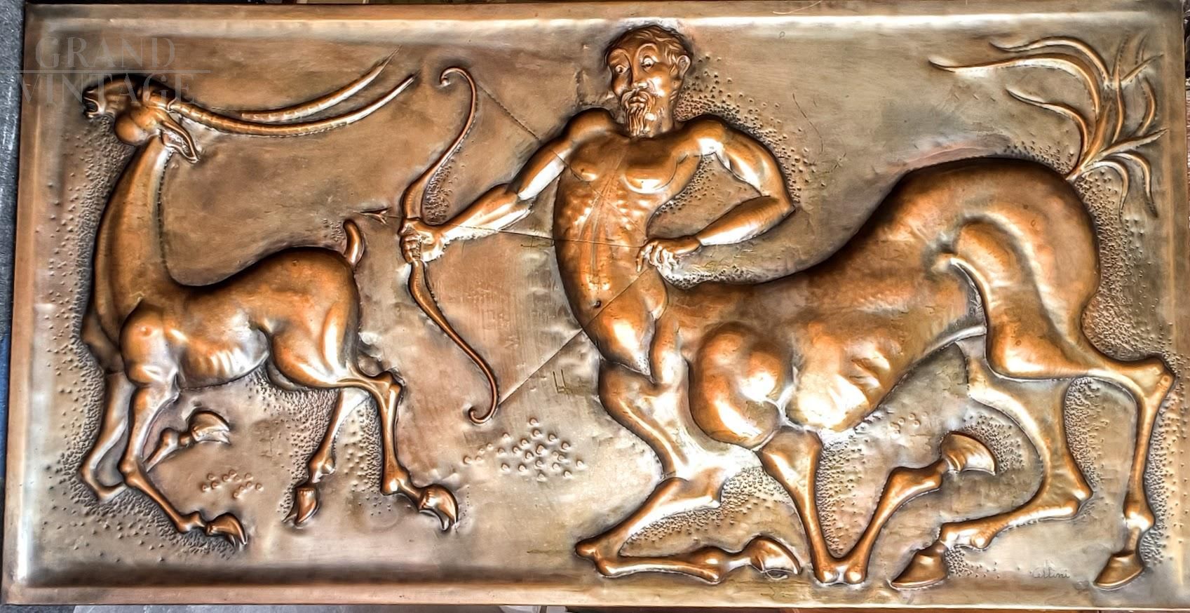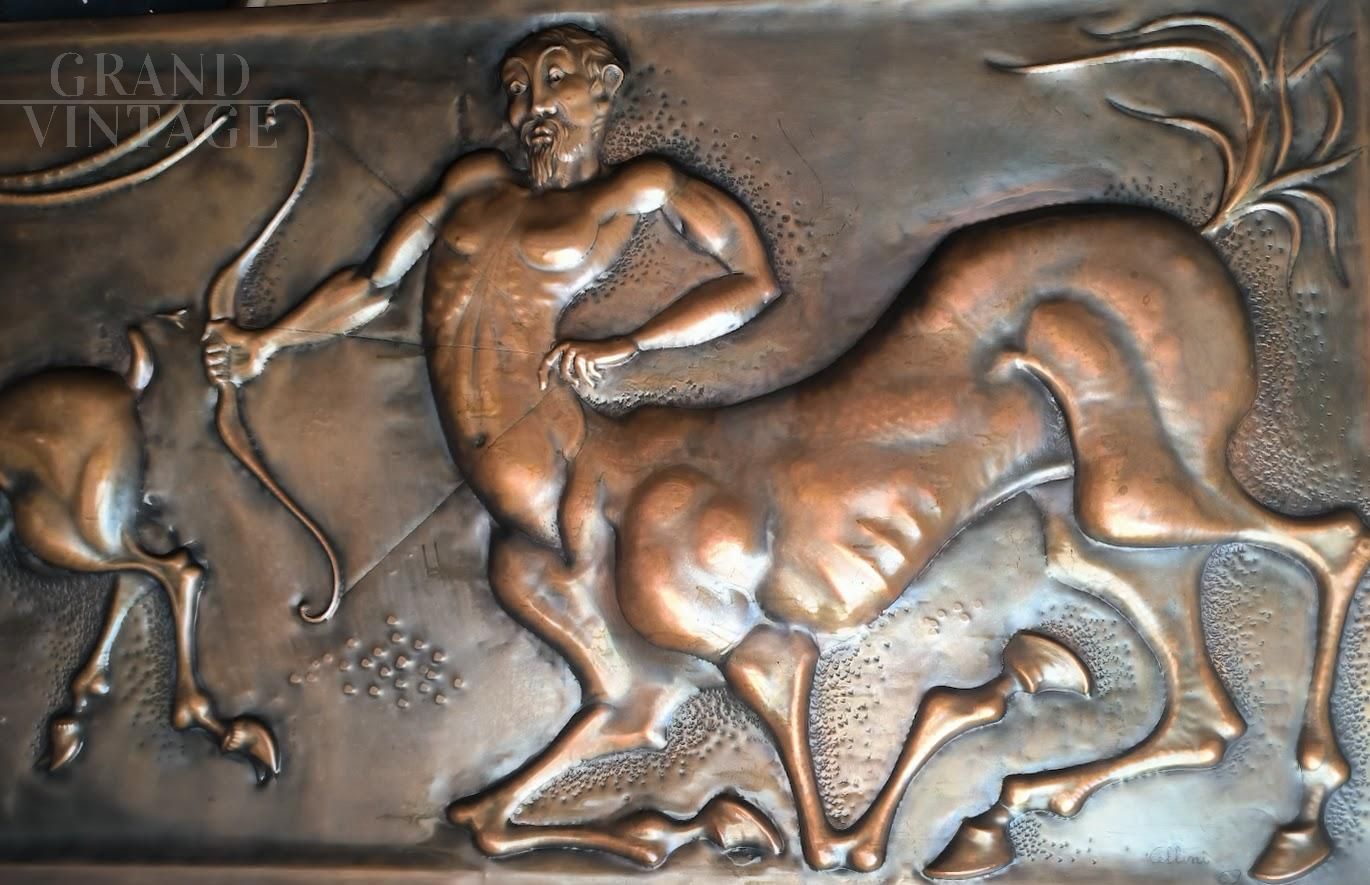 Centauro - Grande pannello in rame sbalzato firmato Cellini, 1969