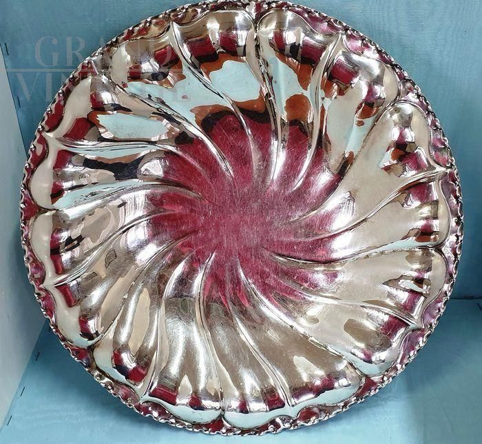 Centrotavola in argento italiano gr. 530 con piedini in legno smontabili a vite, in buone condizioni, presenta qualche segno dovuto all'età e all'utilizzo.