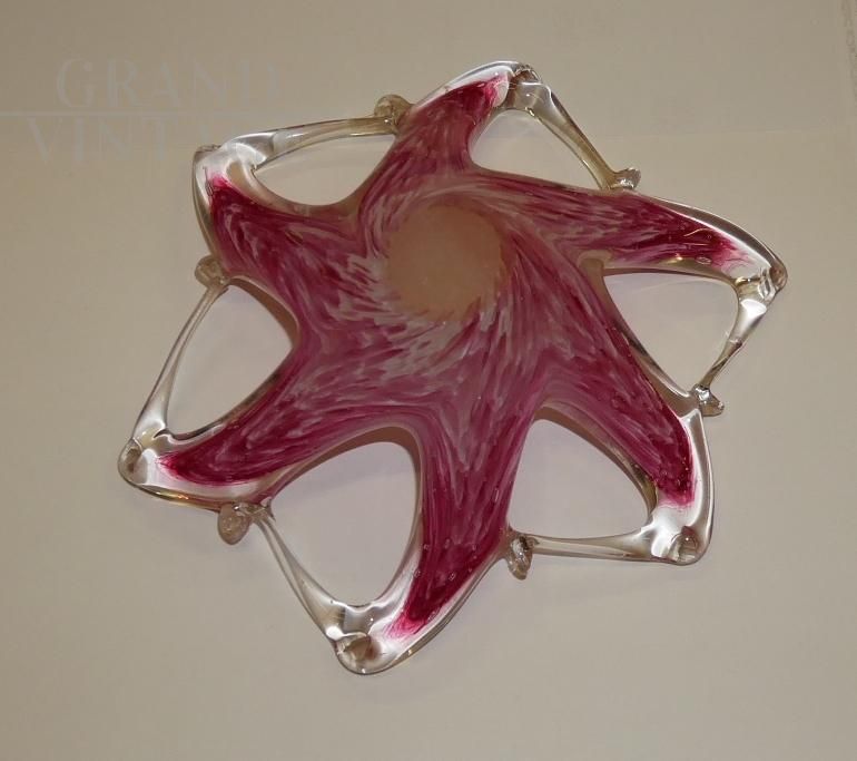 Centrotavola svuota tasche vintage in vetro di Murano rosa