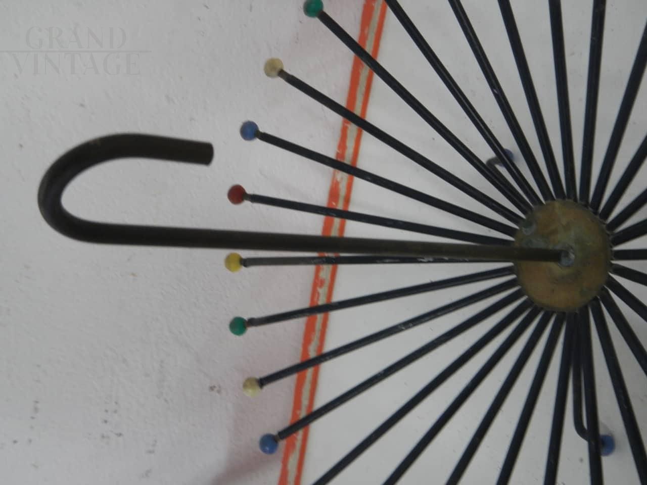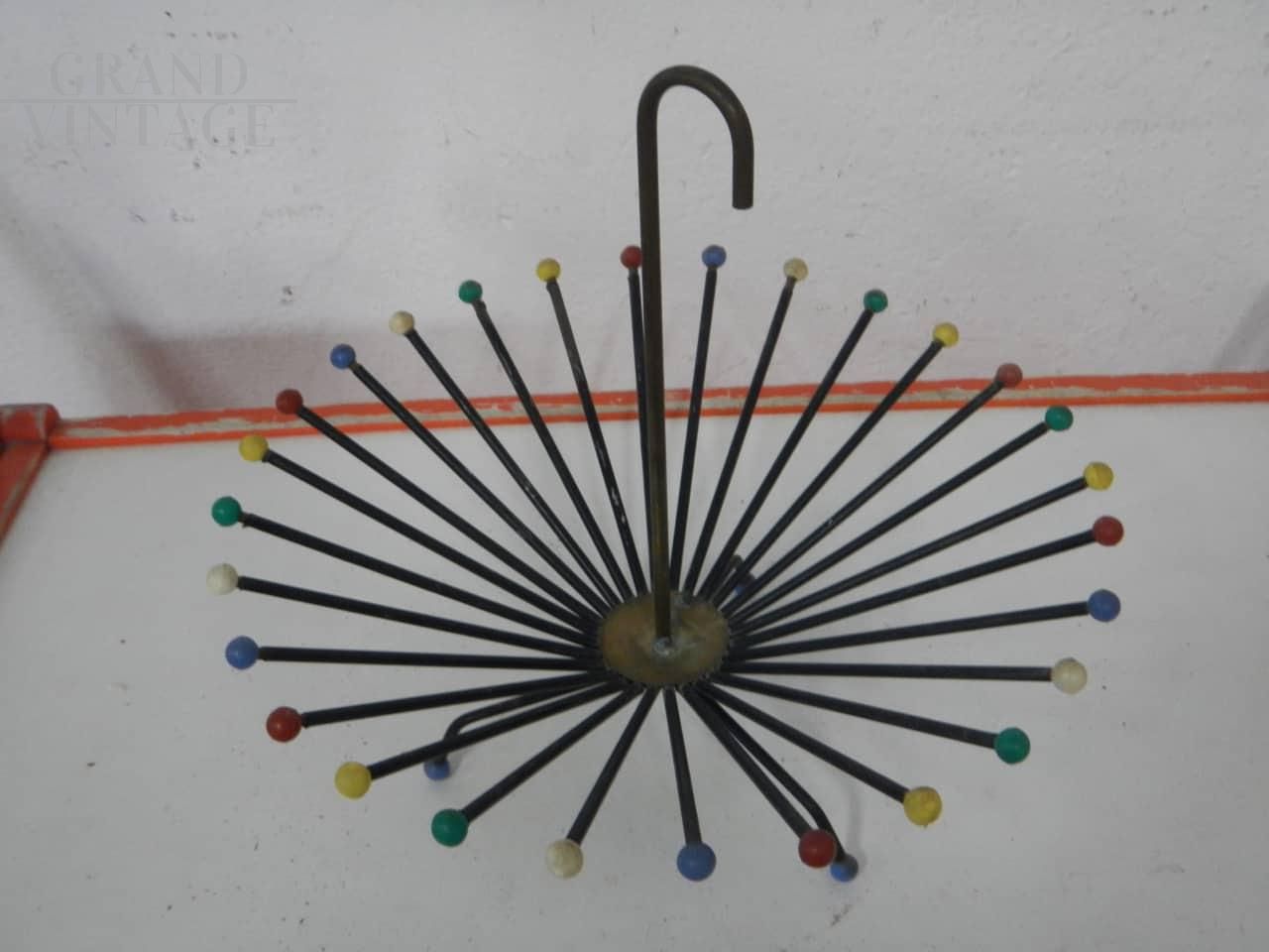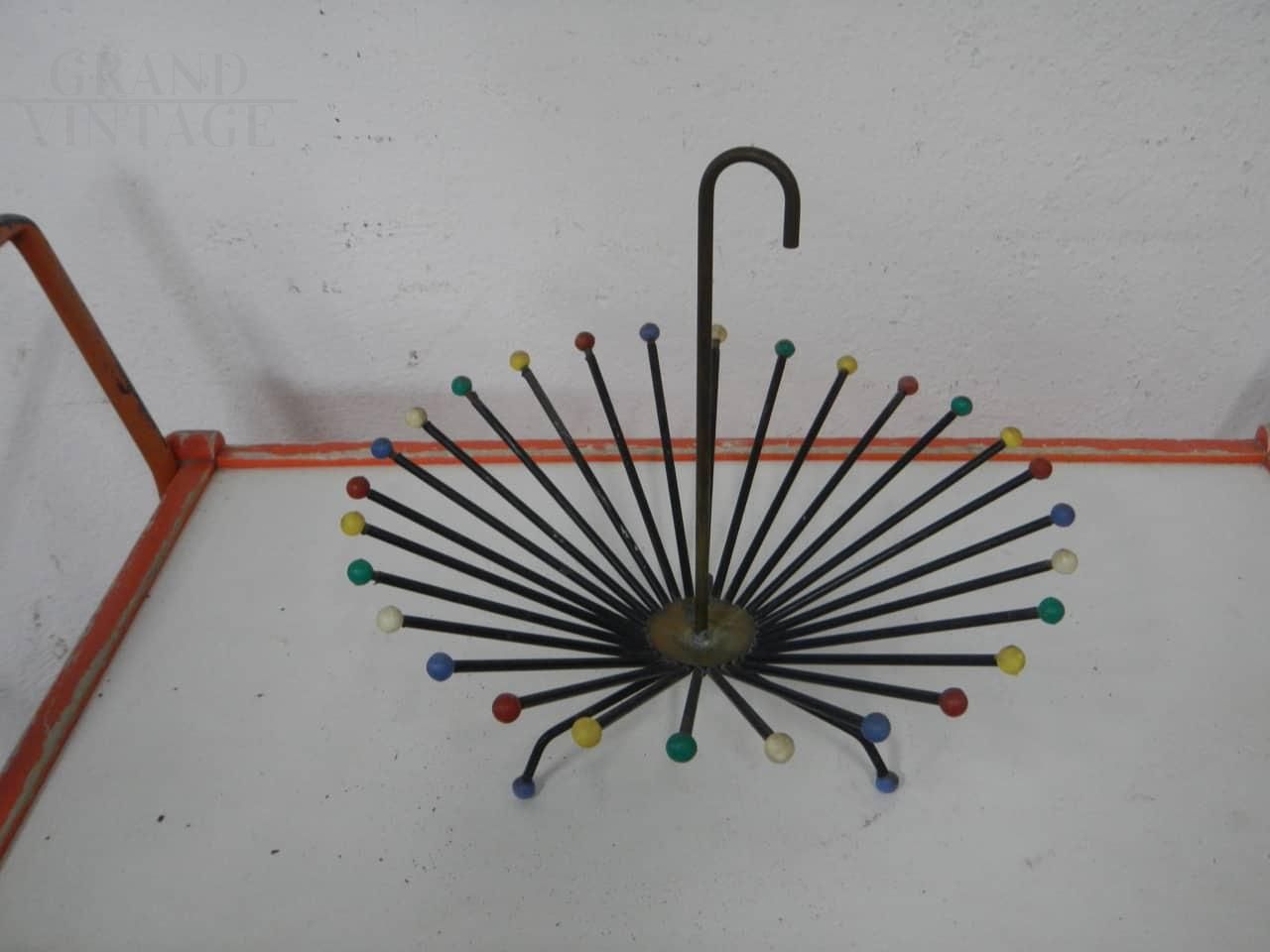 Cesta portafrutta vintage design a raggiera in metallo con palline colorate in stile Stilnovo. In buone condizioni.