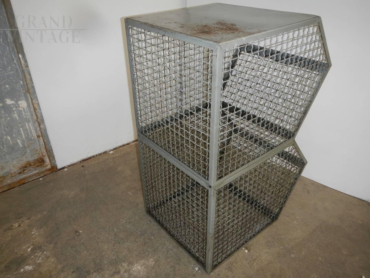 Arredamento vintage industriale, ceste doppie in rete metallica, contenitori industriali vintage a due livelli, anni '70