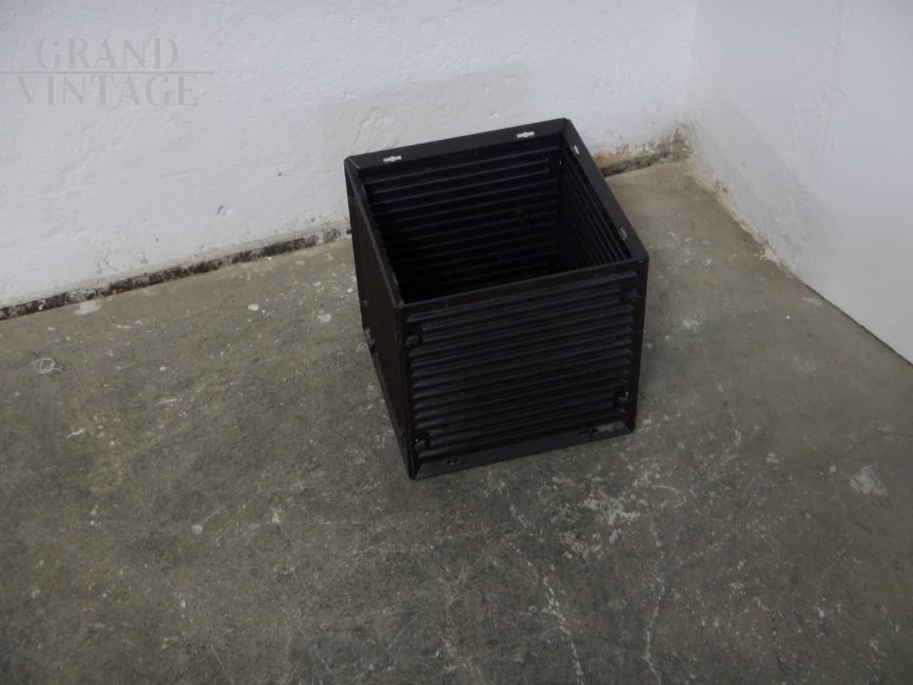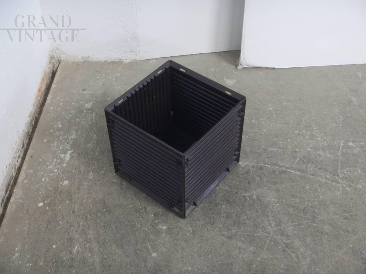 Contenitore cestino porta carte Olivetti Synthesis in plastica marrone, con marchio ben visibile, presenta i naturali segni di usura, in particolare il fondo è rovinato.