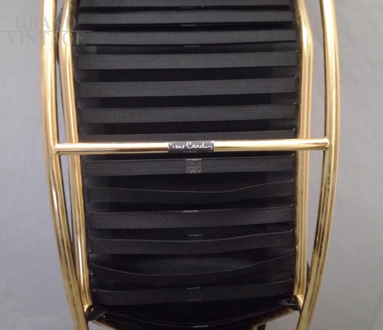 Chaise longue Pierre Cardin dorata di ispirazione Bauhaus in pelle marrone