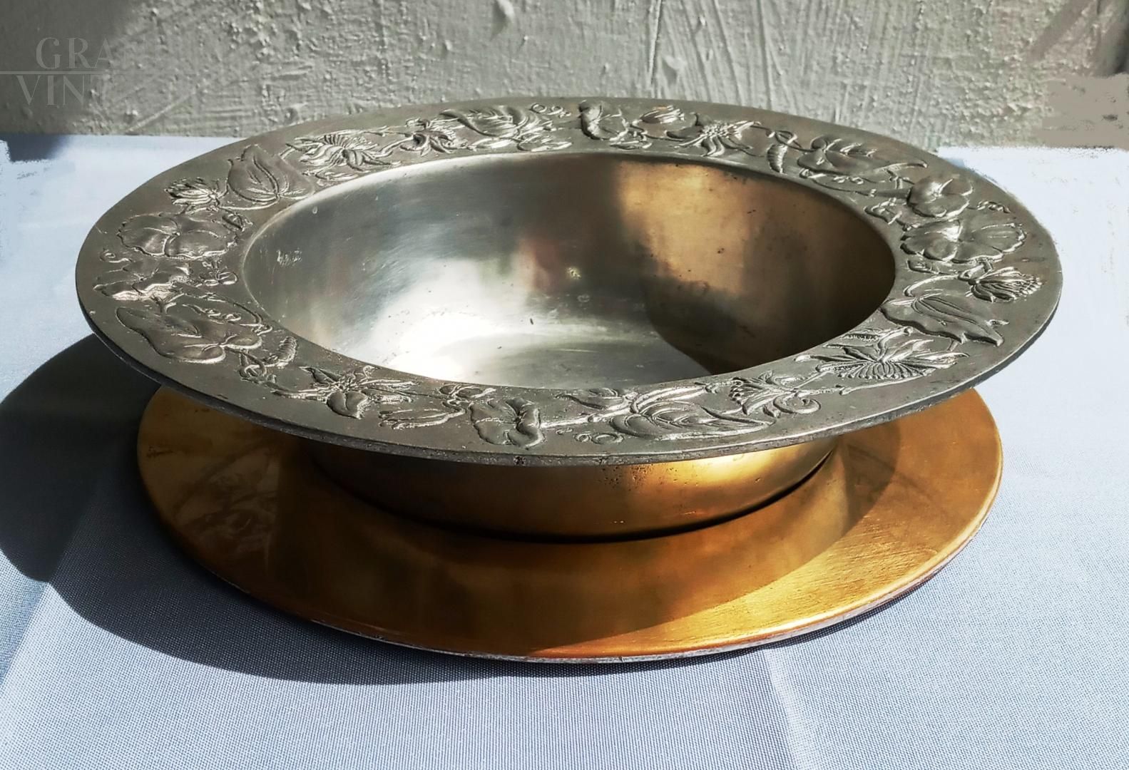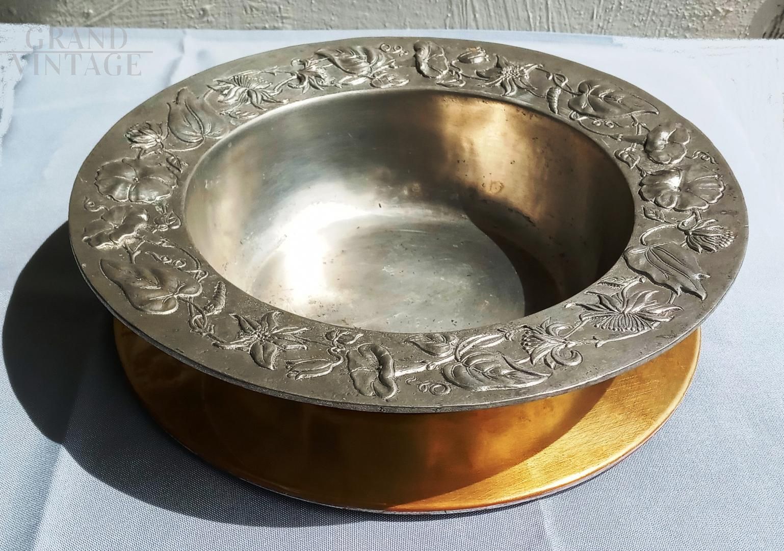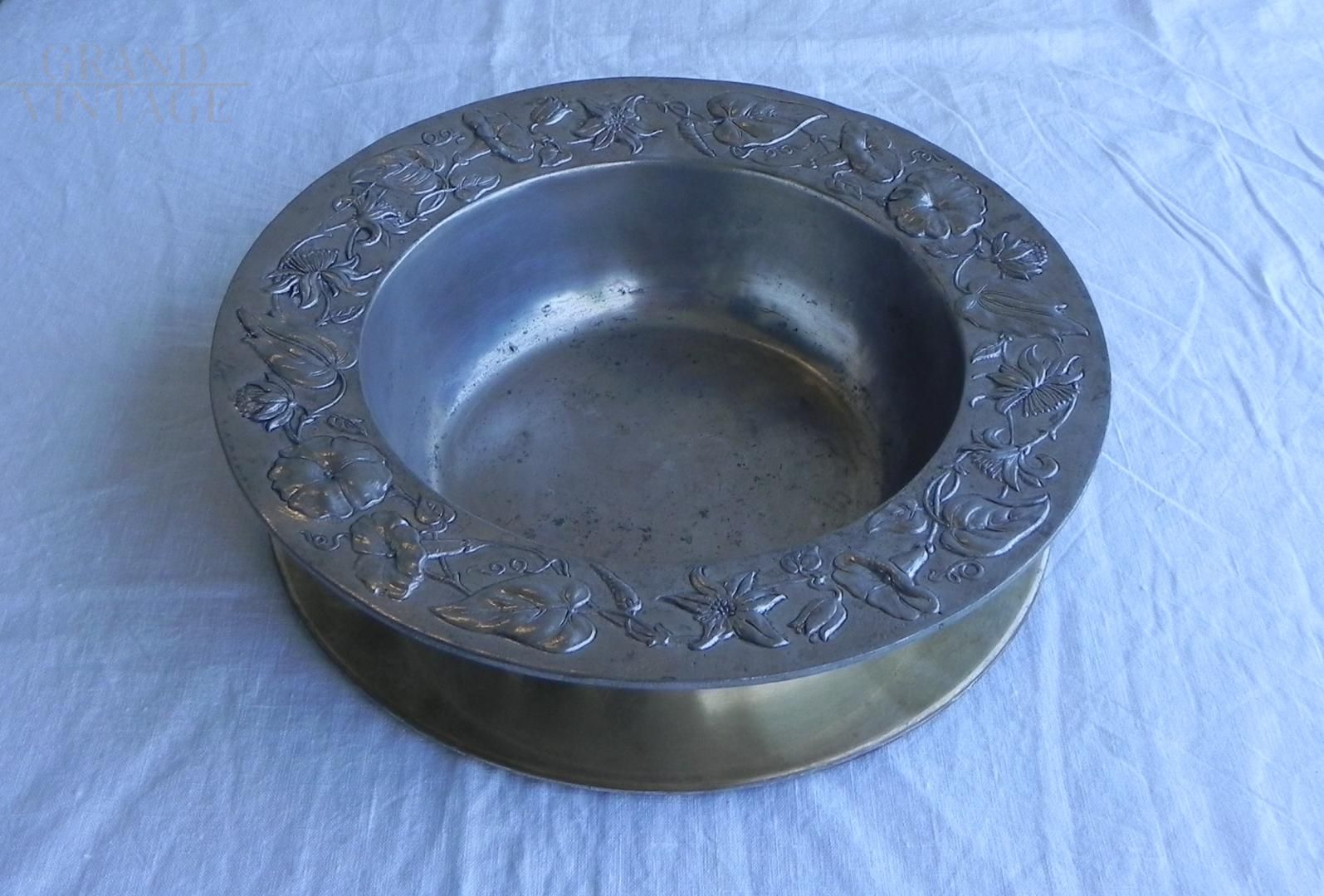 Ciotola centrotavola vintage in peltro decorato