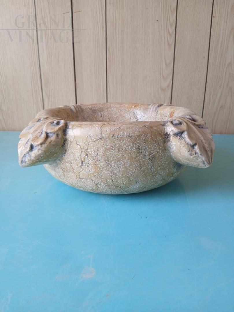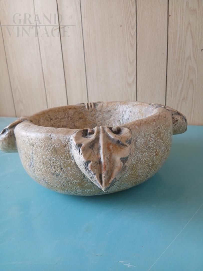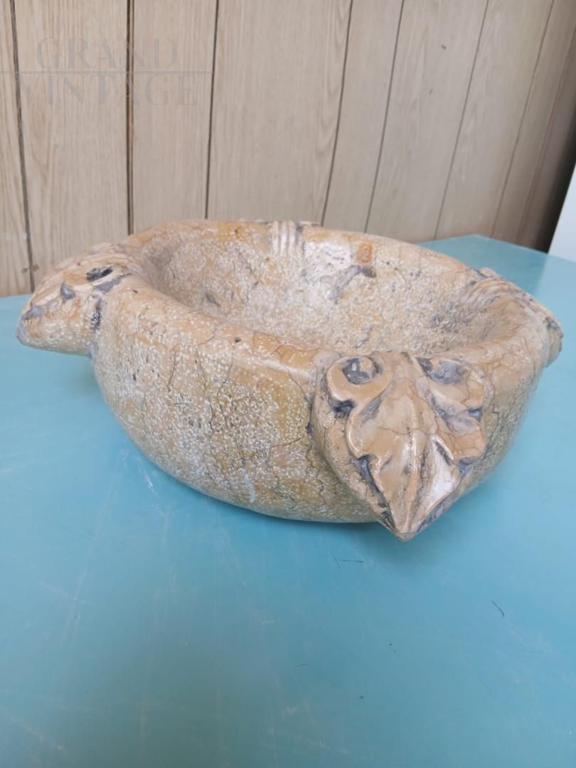 Magnifica ciotola svuota tasche in stile antico realizzata in marmo giallo reale e finemente scolpita con foglie di acanto, prodotta con materiali e tecniche antichi.