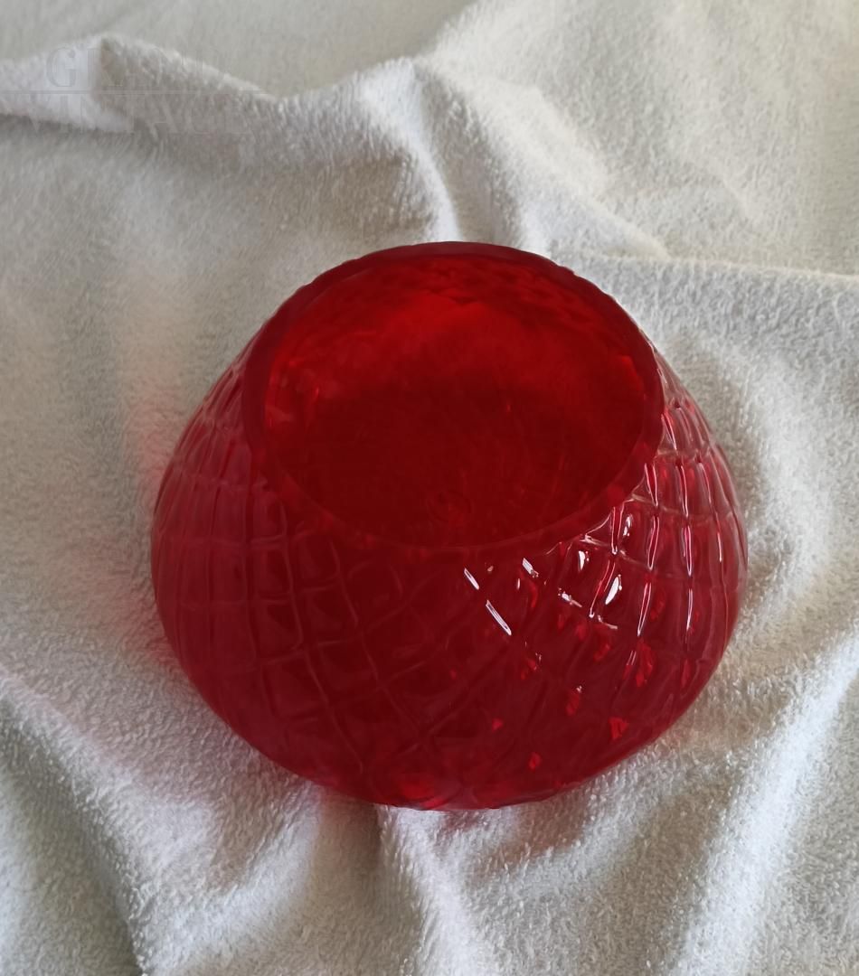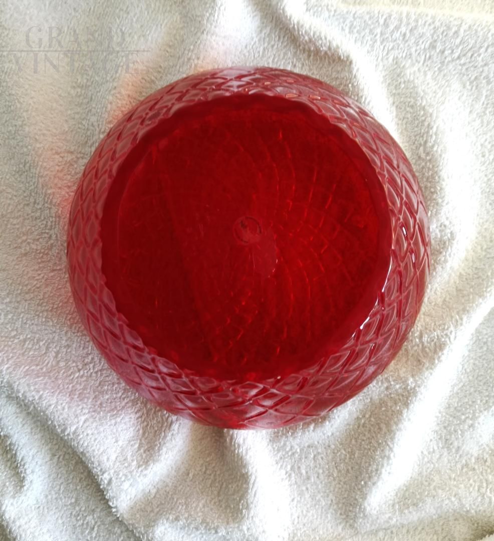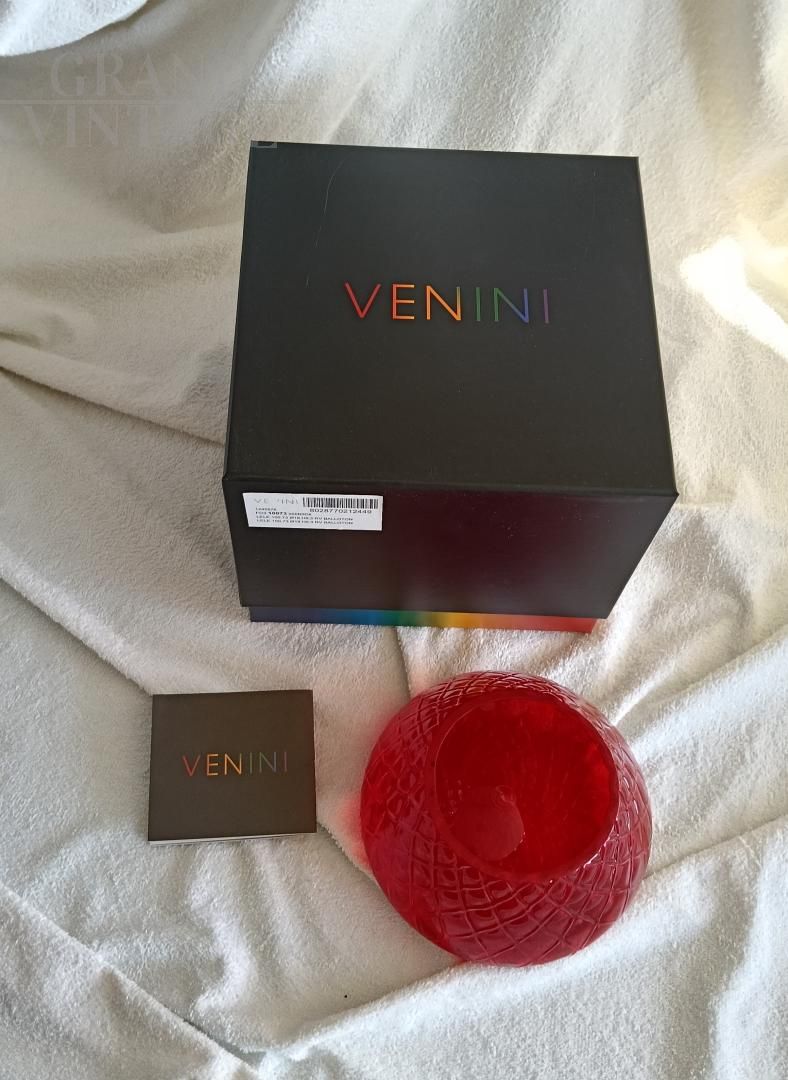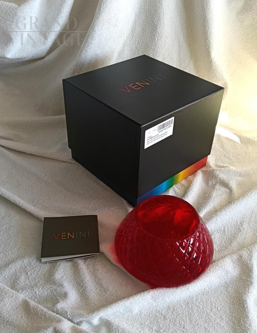 Ciotola portacandela centrotavola Venini degli anni 2000, modello Balloton, in vetro di Murano rosso finemente lavorato. Come nuova, completa di scatola con imballo originale e libretto Venini. La tecnica del Balloton, che consiste nel creare una superficie a rilievo sul vetro soffiato, è frutto della maestria dei maestri vetrai di Murano e rappresenta un'evoluzione delle tecniche tradizionali. Questa lavorazione complessa e affascinante ha permesso di creare oggetti unici e di grande valore estetico.