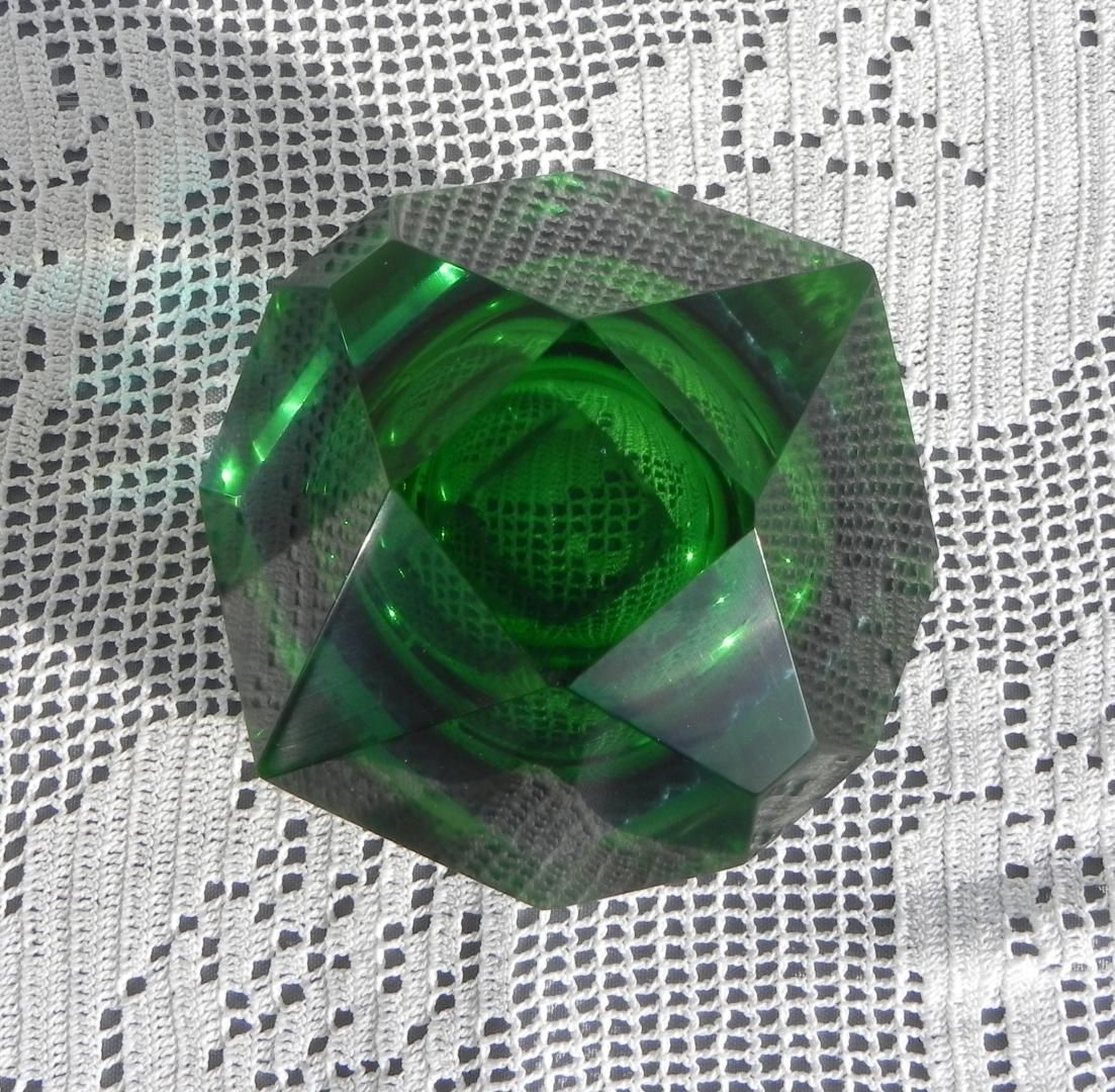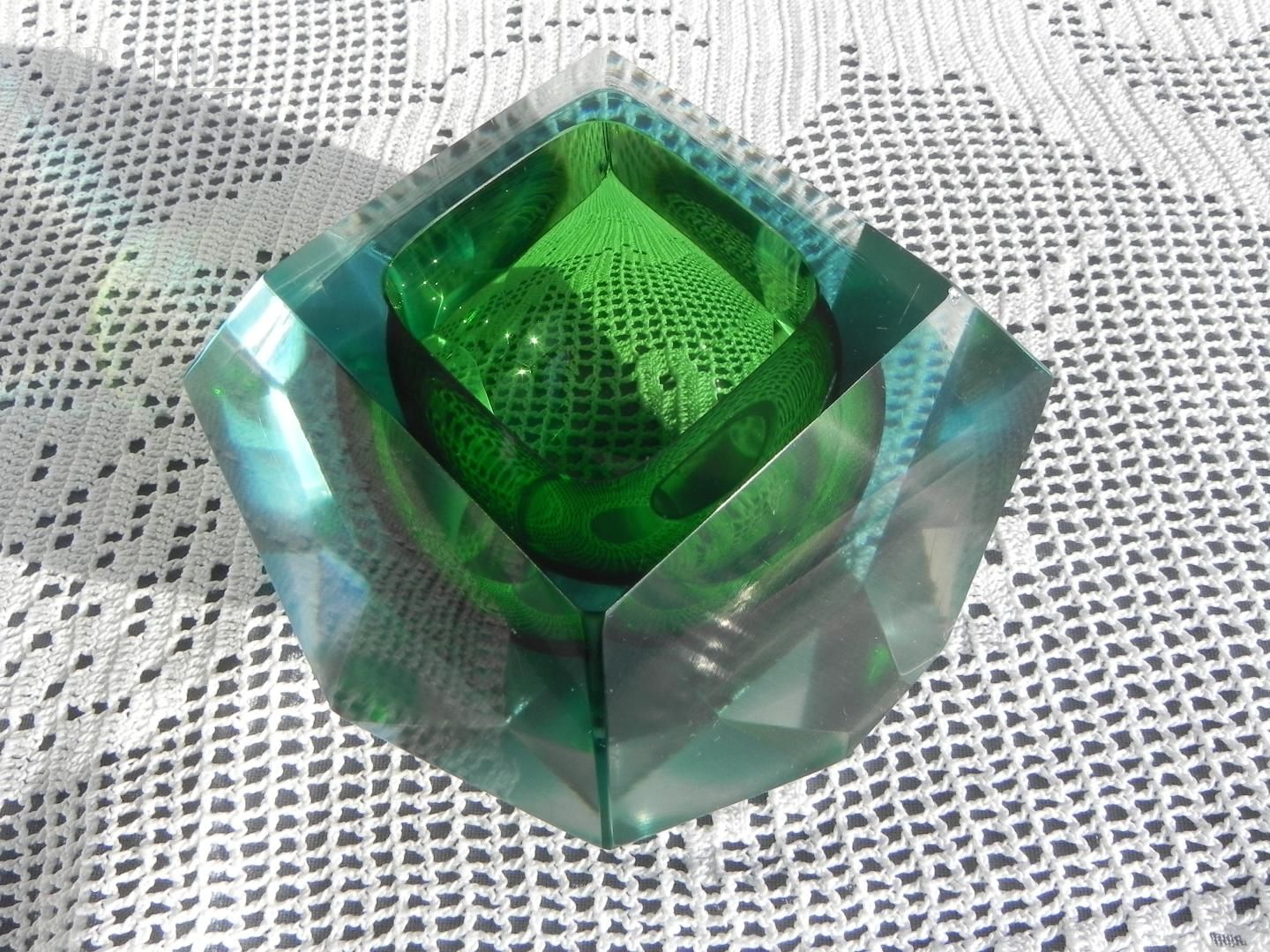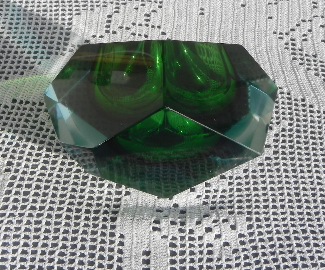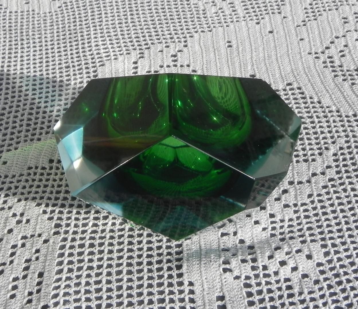 Ciotola posacenere Seguso in vetro di Murano verde sfaccettato, anni '70