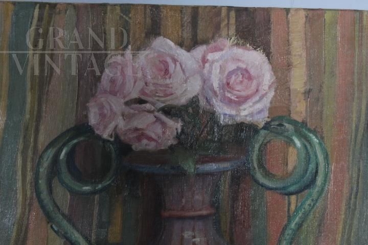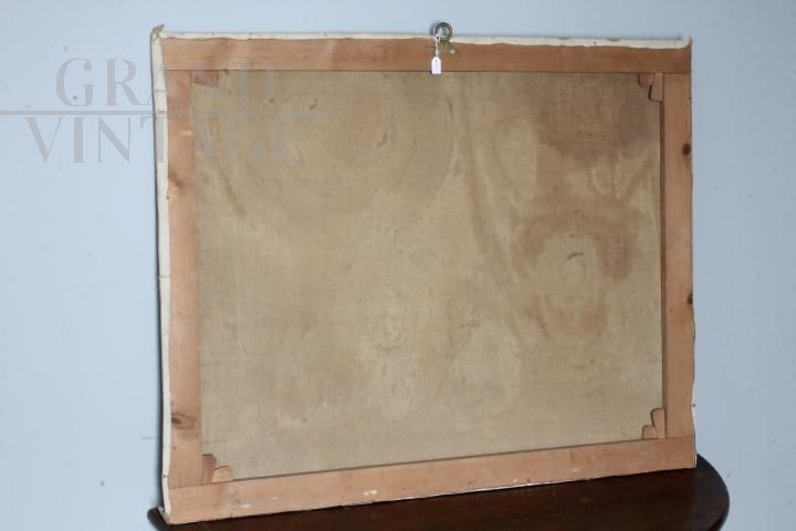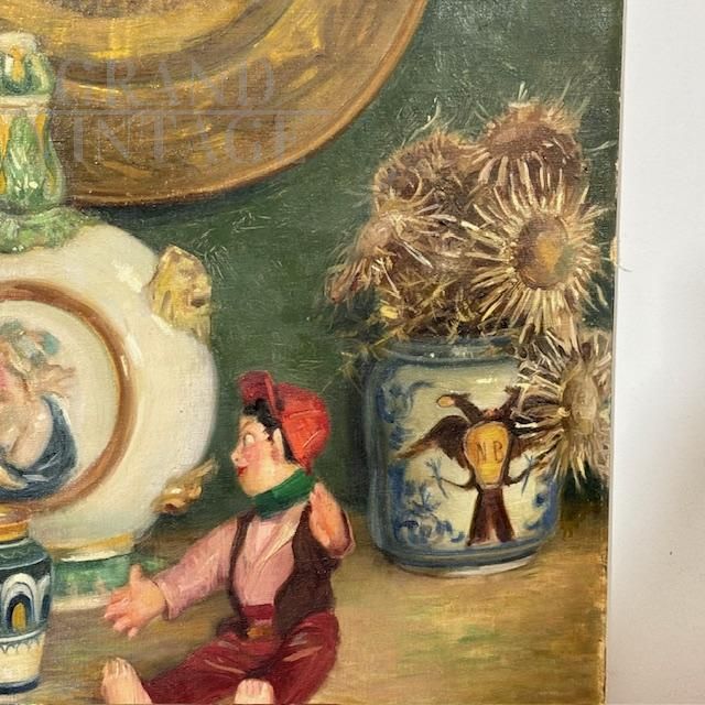 Antico dipinto olio su tela di Augusto Baracchi . (Modena 1878 – Milano 1942 ) Datato e firmato 1923 “ Collezionista “ . Buono stato di conservazione . mis 100 x 80