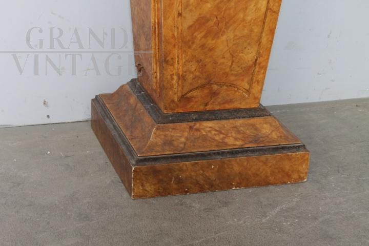 Colonna antica del XVIII secolo dipinta in finto marmo giallo Siena