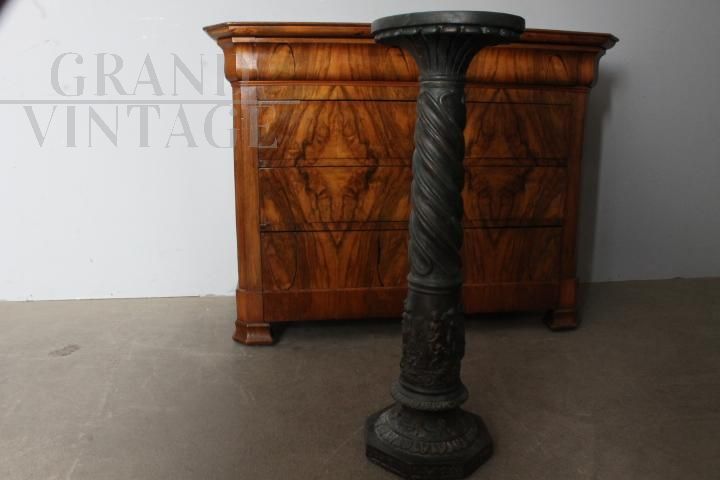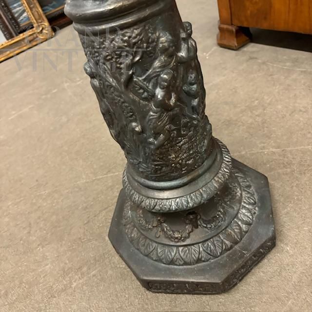 Colonna antica in marmo bronzato scolpito con scene classiche, primi '900