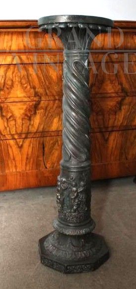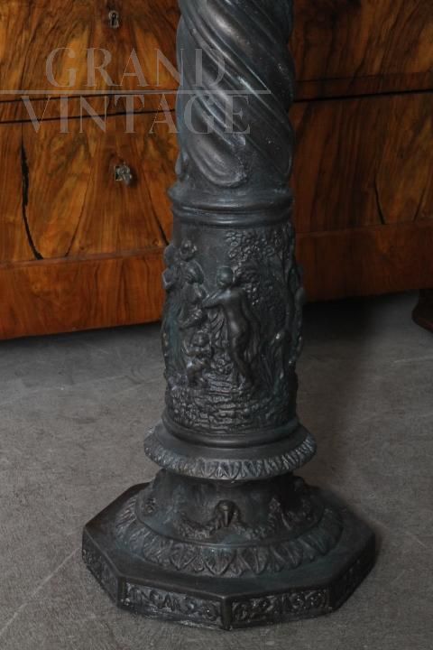 Antica e bellissima colonna dei primi del '900, realizzata in materiale composito cemento e malte, dipinta effetto bronzo e scolpita con rilievi raffiguranti scene classiche e personaggi.