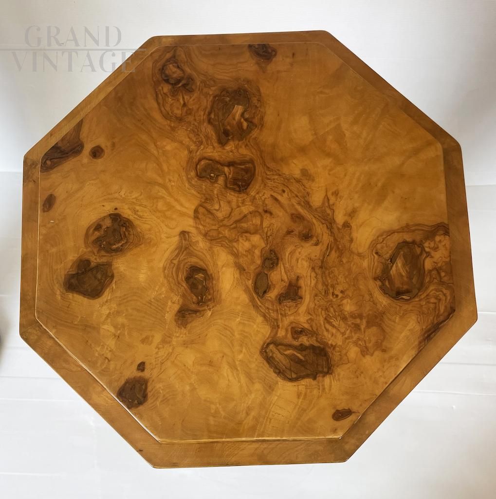 Particolare colonna piedistallo in stile Art Déco realizzata interamente in radica di betulla, un solo pezzo disponibile. Provenienza: Italia anni '80.