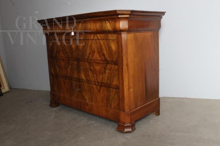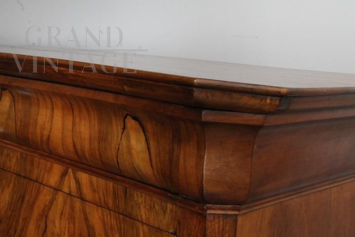 Comò antico cappuccino dell'800 in noce biondo massello e radica