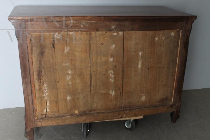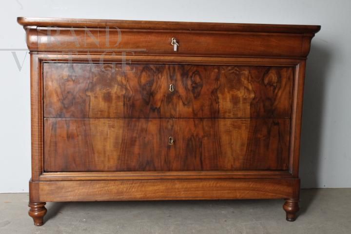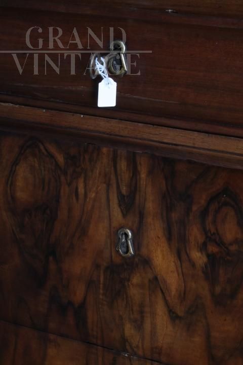 Comò antico cappuccino Luigi Filippo in noce con cassetti in radica