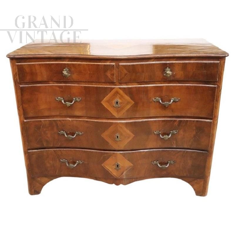 Comò antico del XVIII secolo con intarsi a rombi, epoca Luigi XV