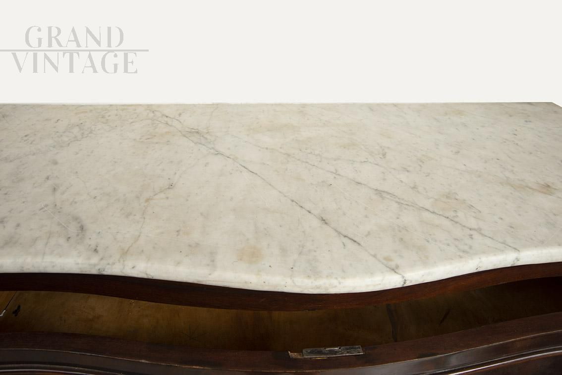 Comò antico Luigi Filippo in piuma di mogano con piano in marmo