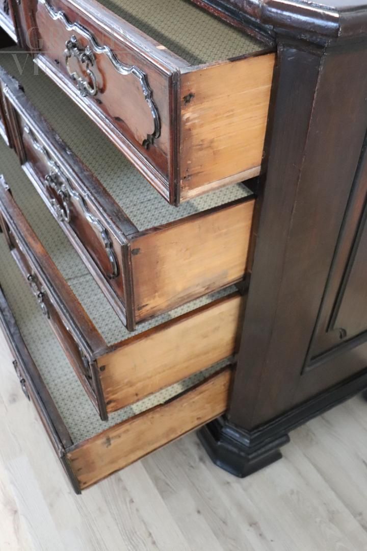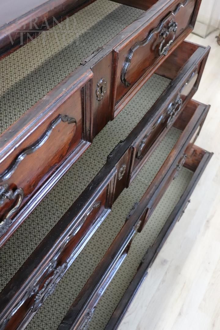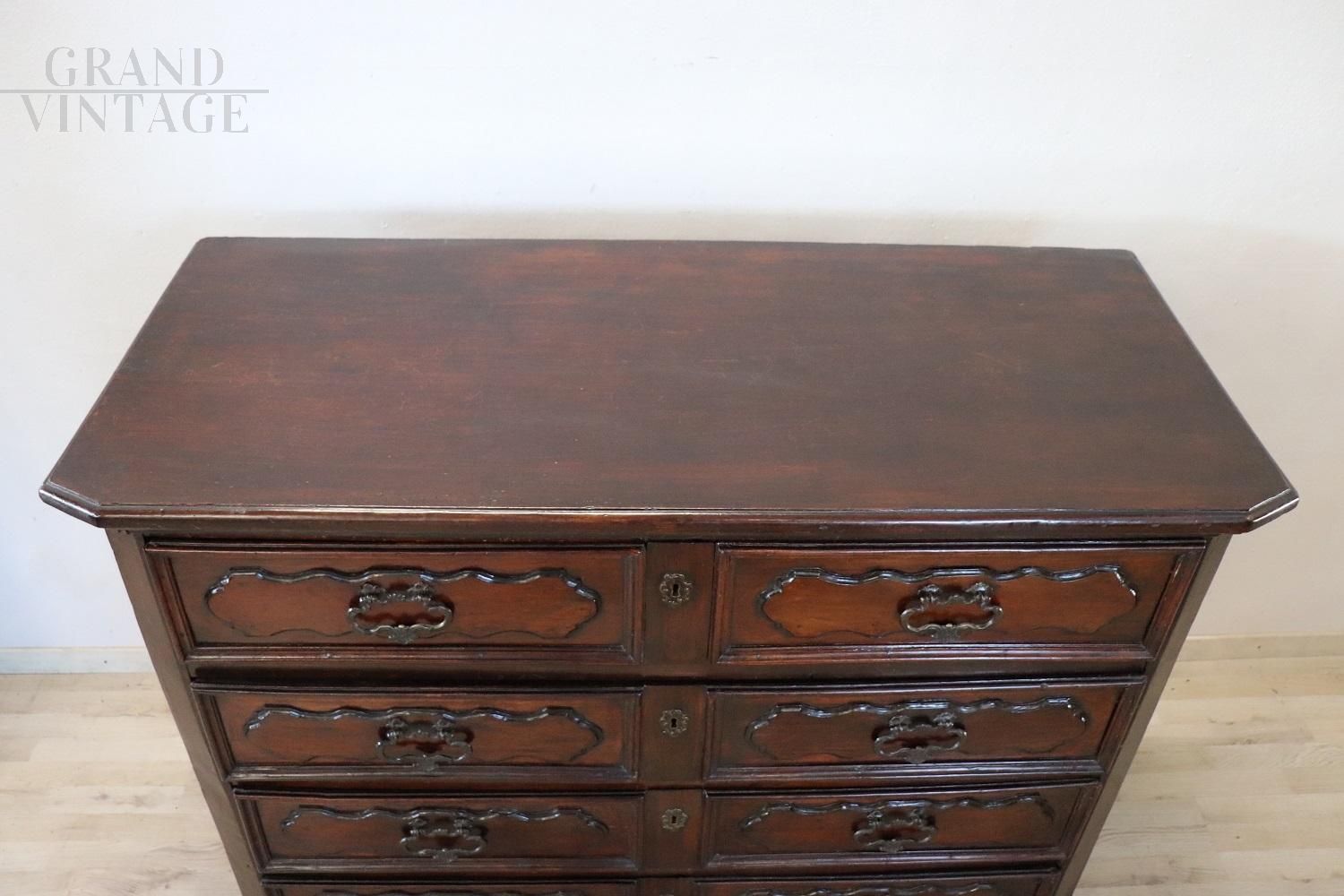 Comò canterano antico Luigi XIV del XVII secolo in noce massello