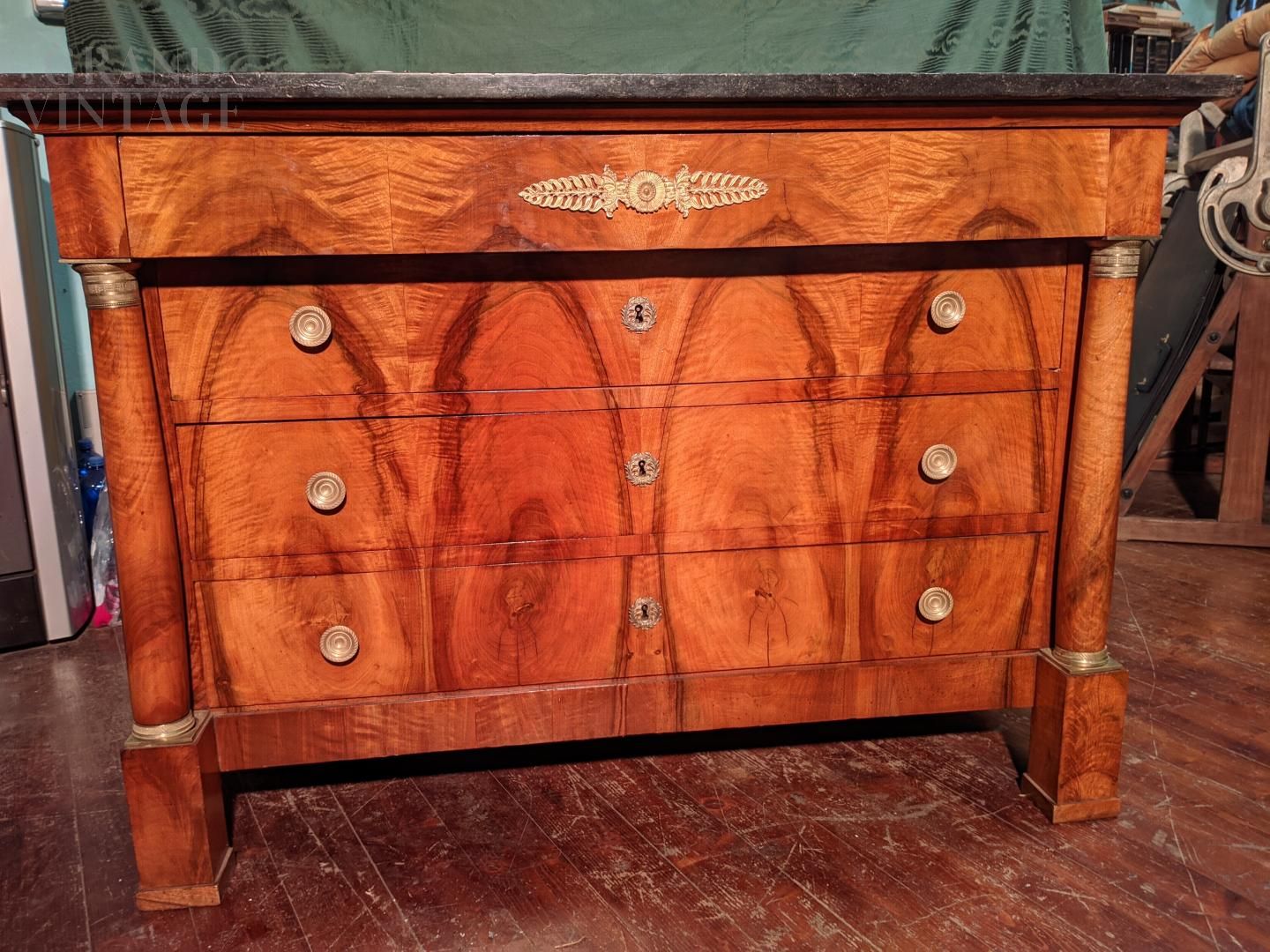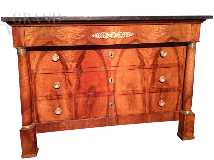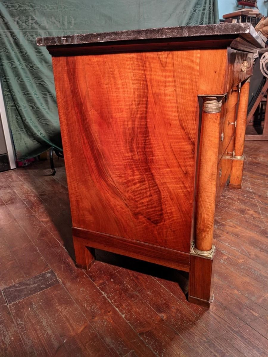 Comò cassettone Impero con piano in marmo nero