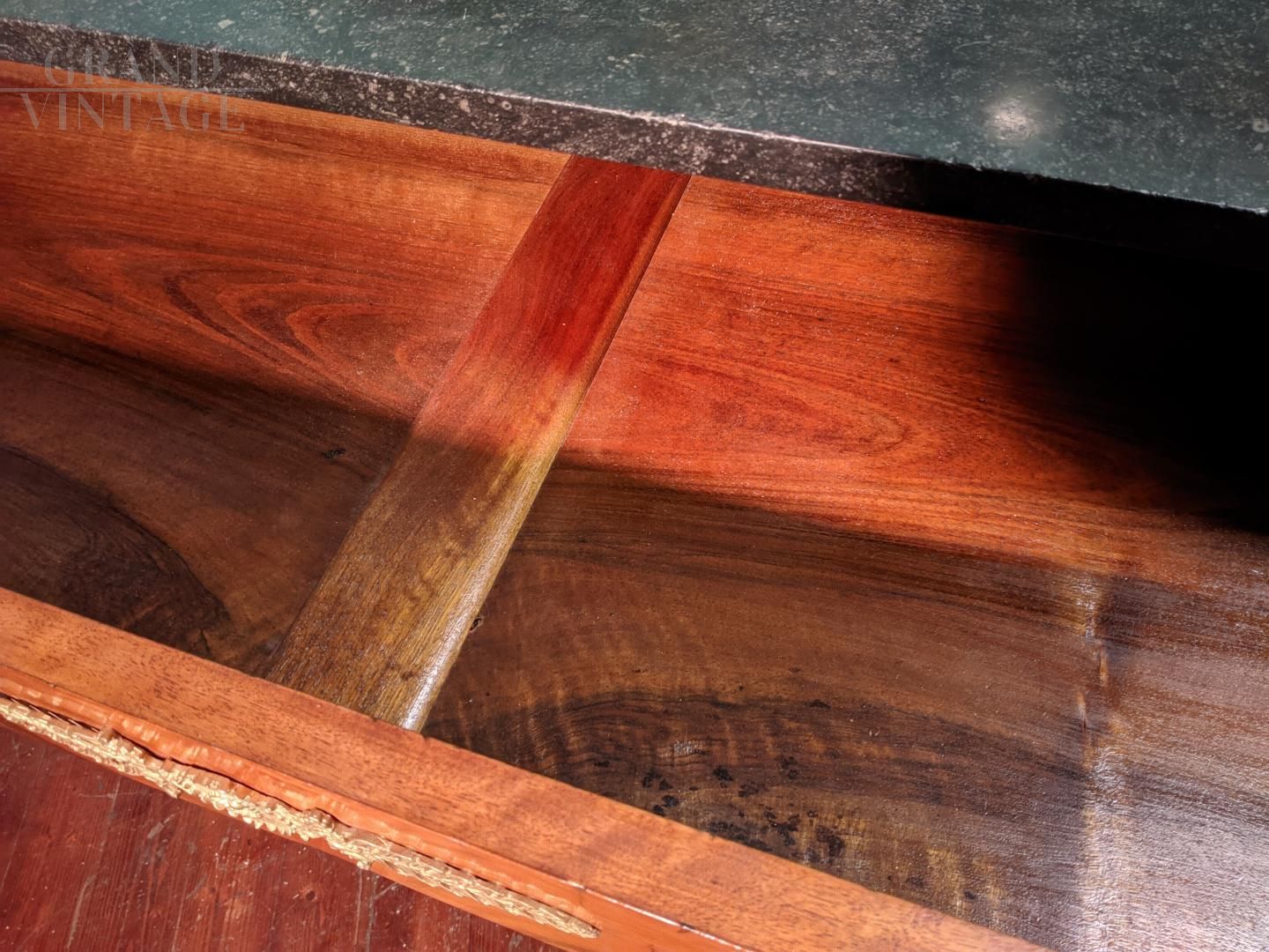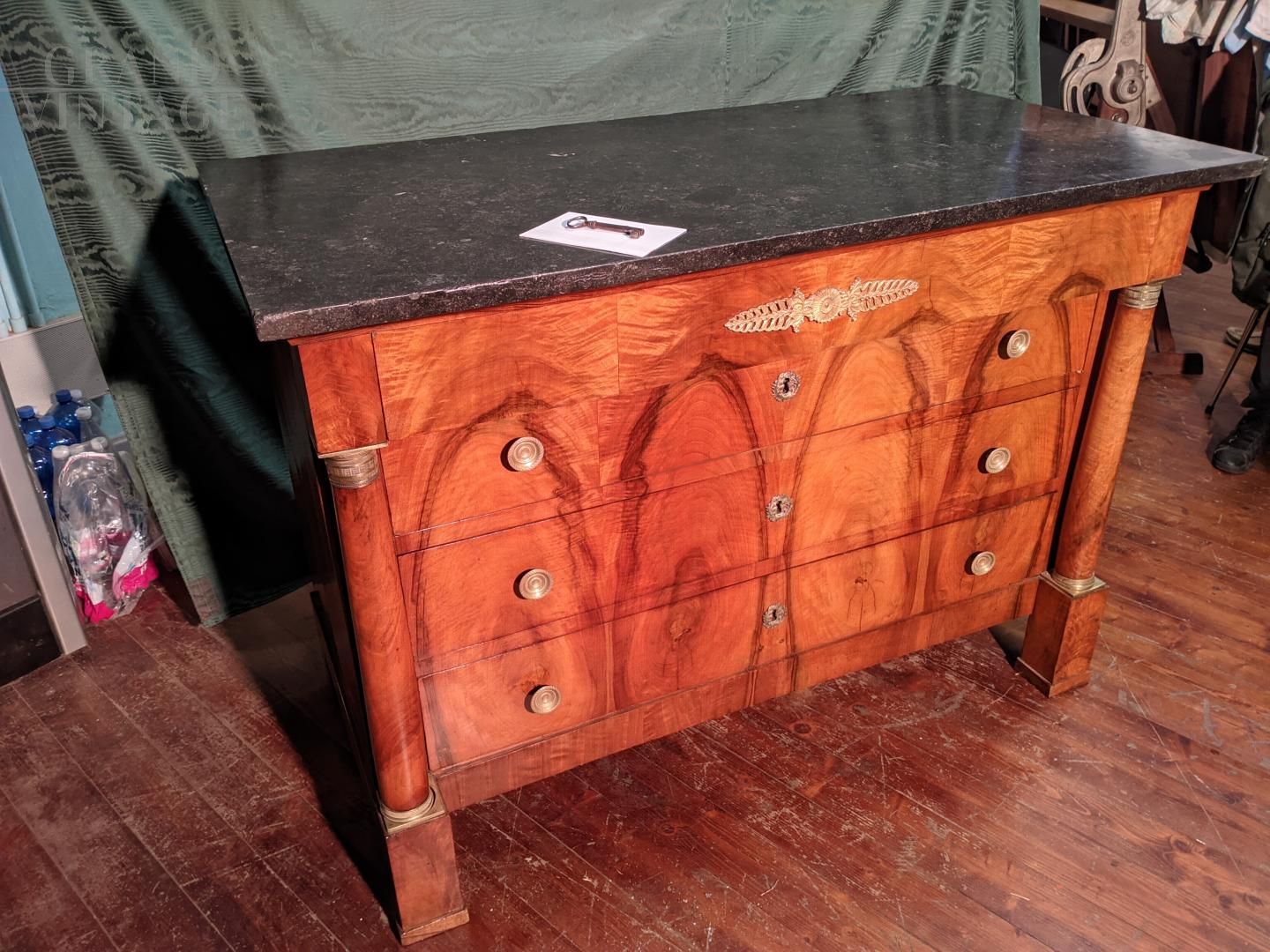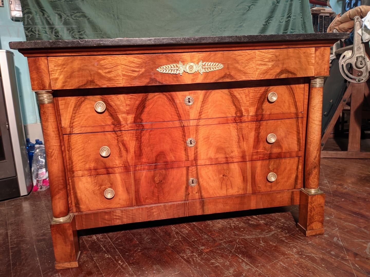 Comò cassettone Impero con piano in marmo nero