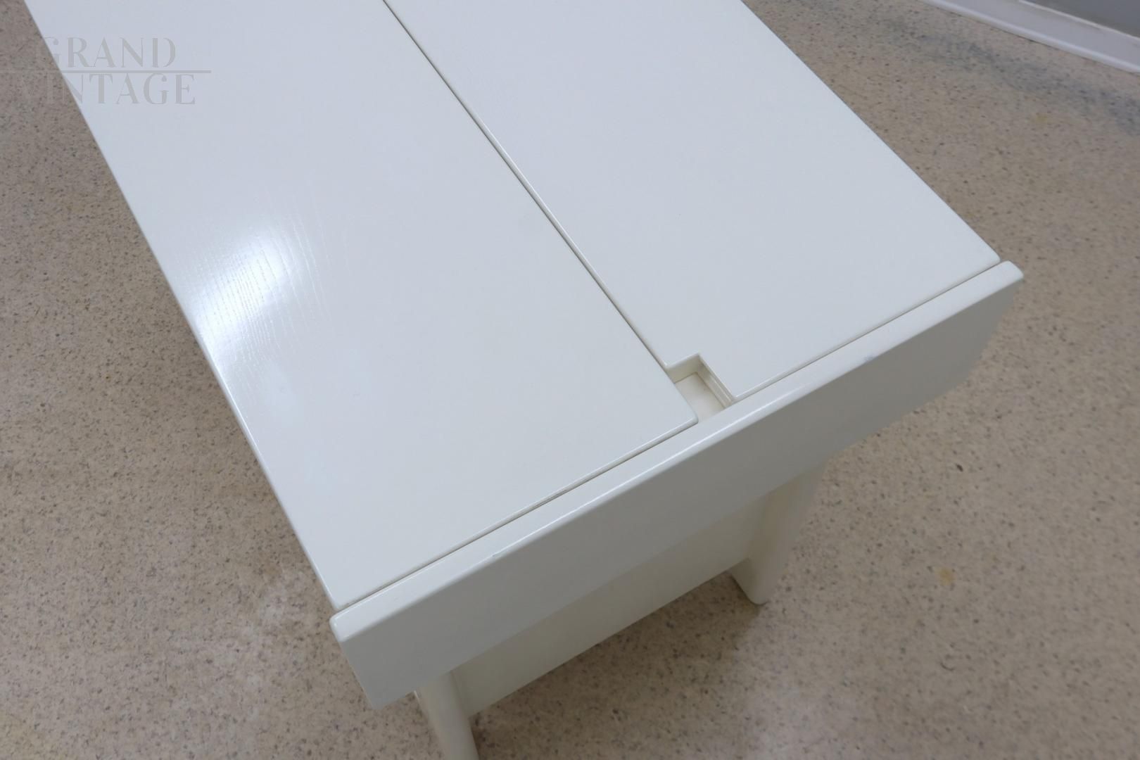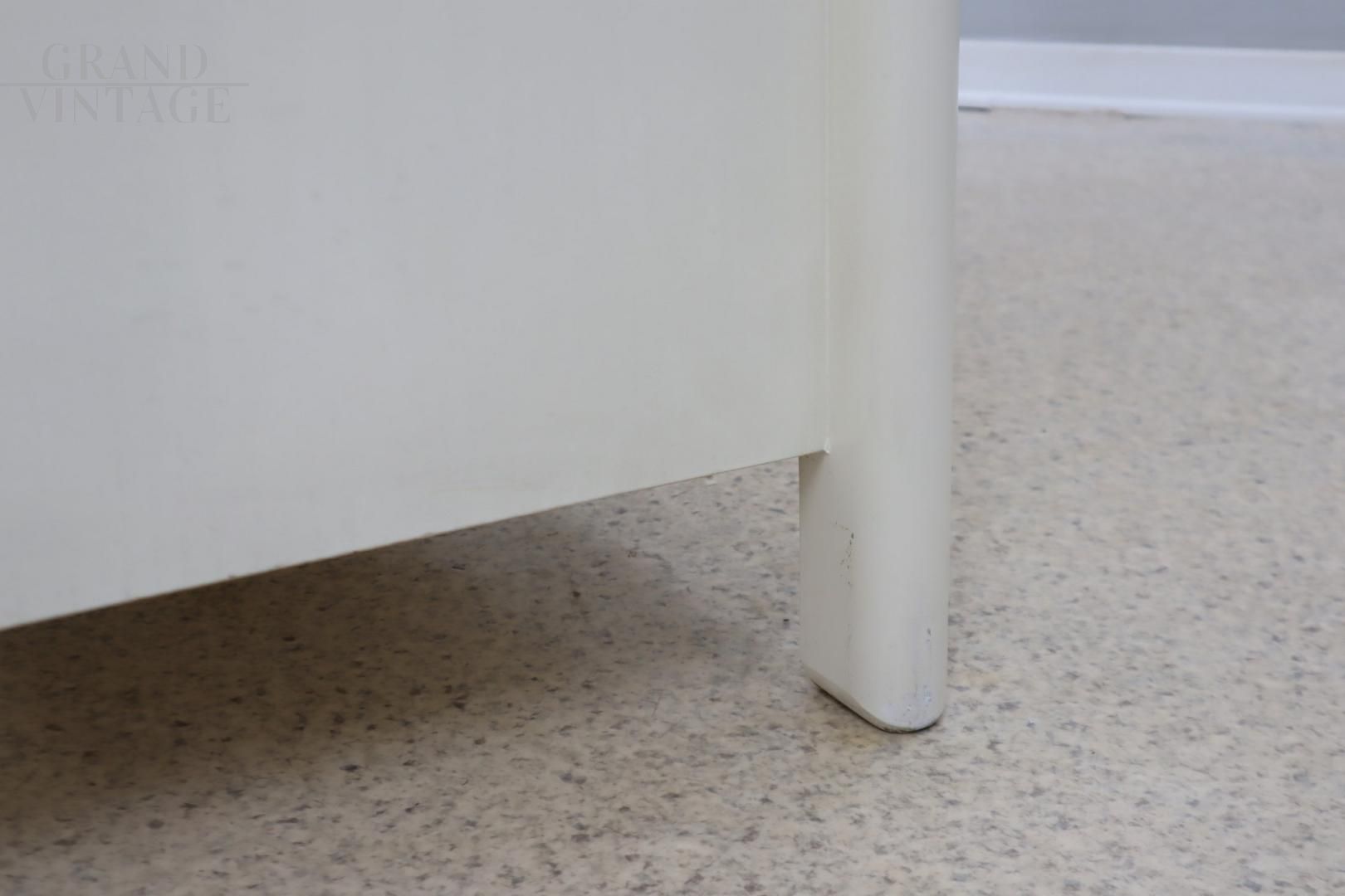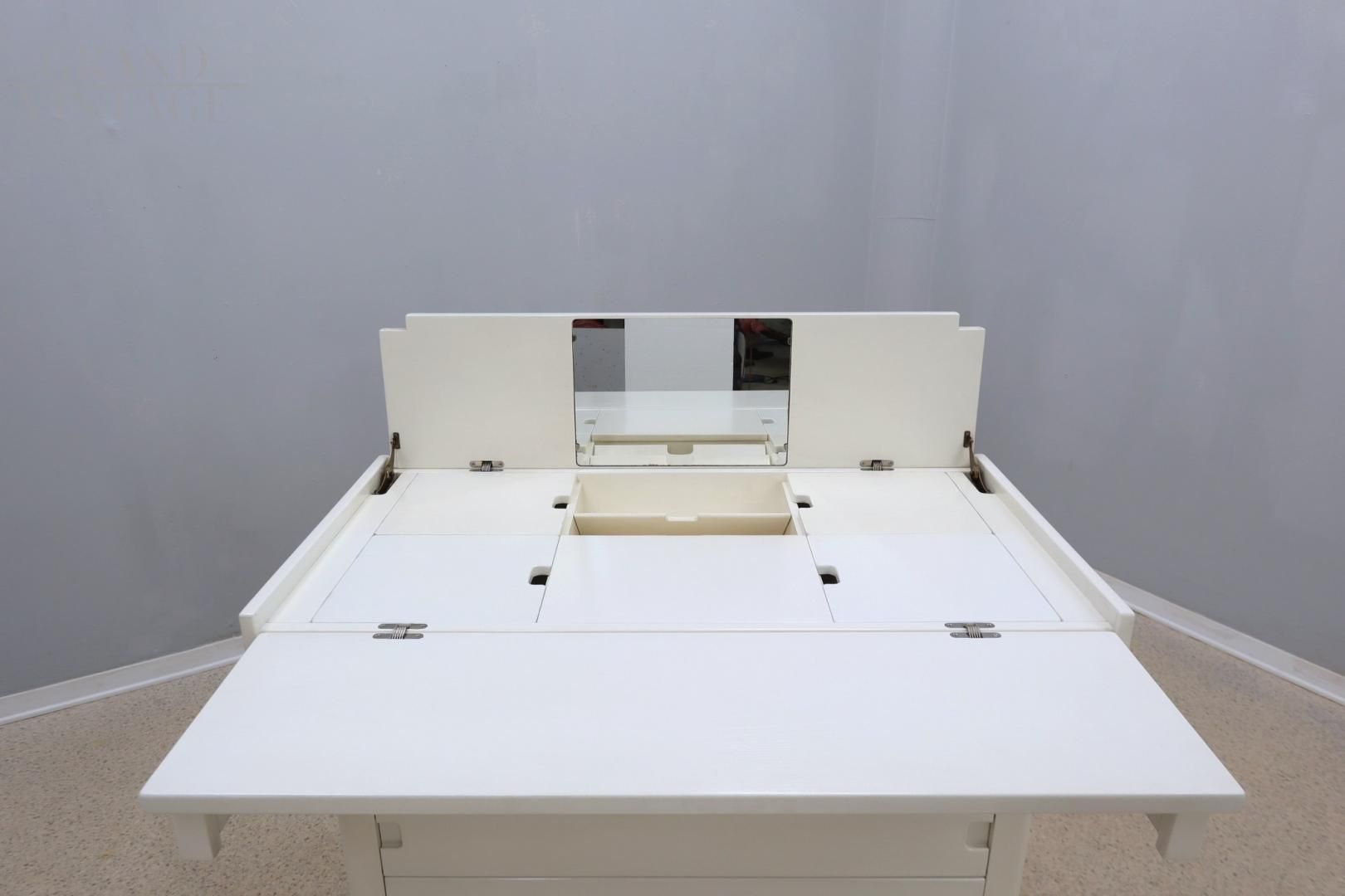 Toeletta vintage originale con cassetti modello Unending, design di E. Radaelli per Saporiti Besnate, anni '70, una combinazione perfetta di cassettiera, scrivania e toletta. Il piano superiore si apre in una scrivania sul davanti e in uno specchio sul retro. È realizzata in legno massello laccato bianco. Si mantiene in eccellenti condizioni vintage, coerenti con l'uso e l'età. Pulita e igienizzata. Questo elegante e raffinato mobile vintage italiano da collezione è pronto per arredare la vostra casa, il vostro studio o il vostro negozio!