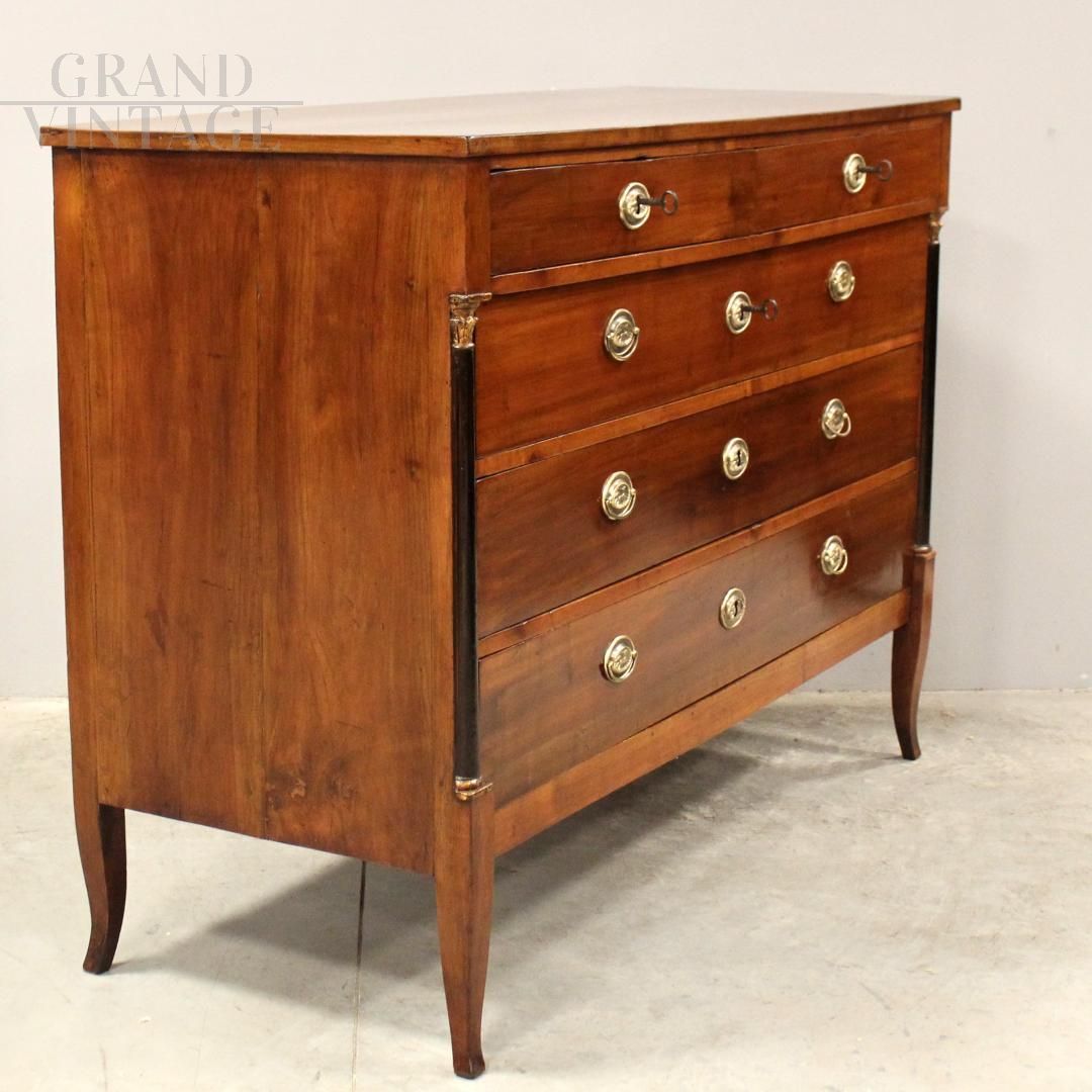 Comò Direttorio antico in noce con 5 cassetti, Italia '700