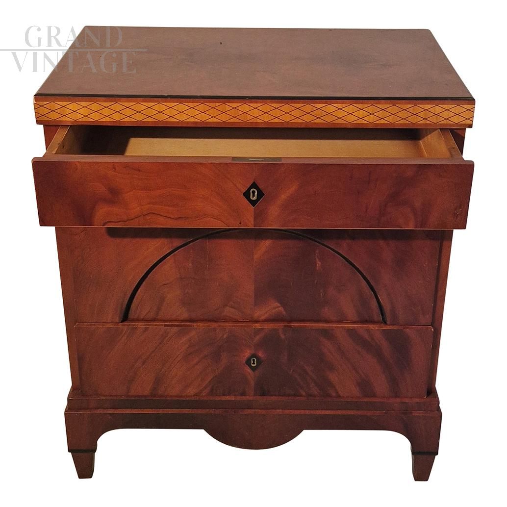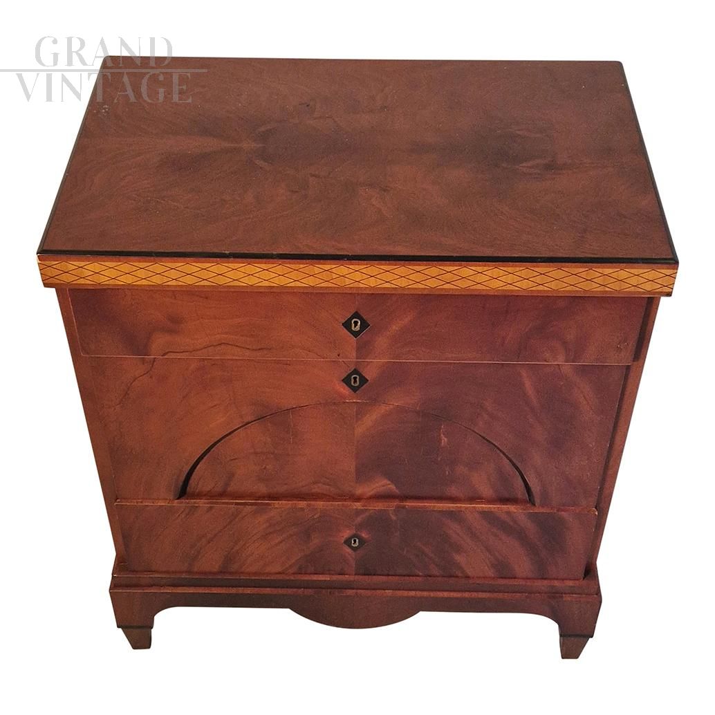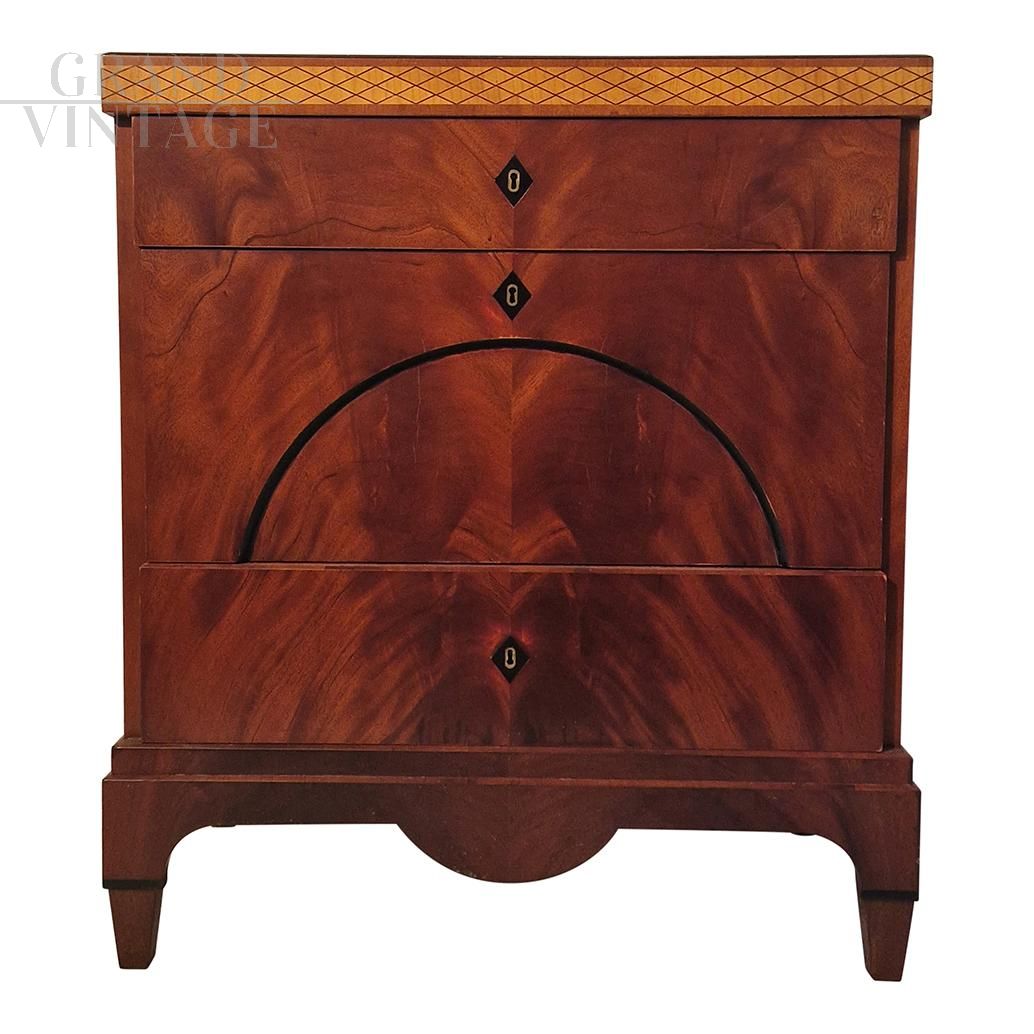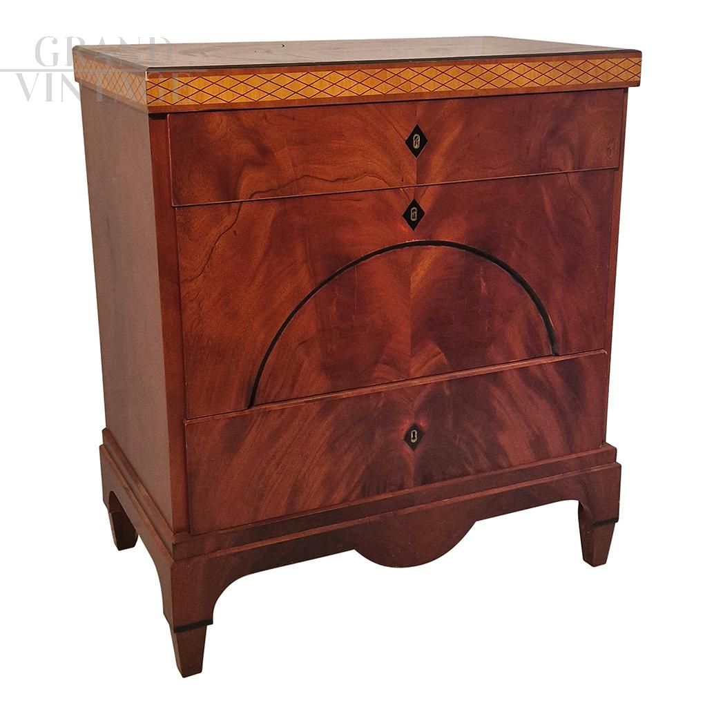 Comò Impero in piuma di mogano con tre cassetti, metà '800