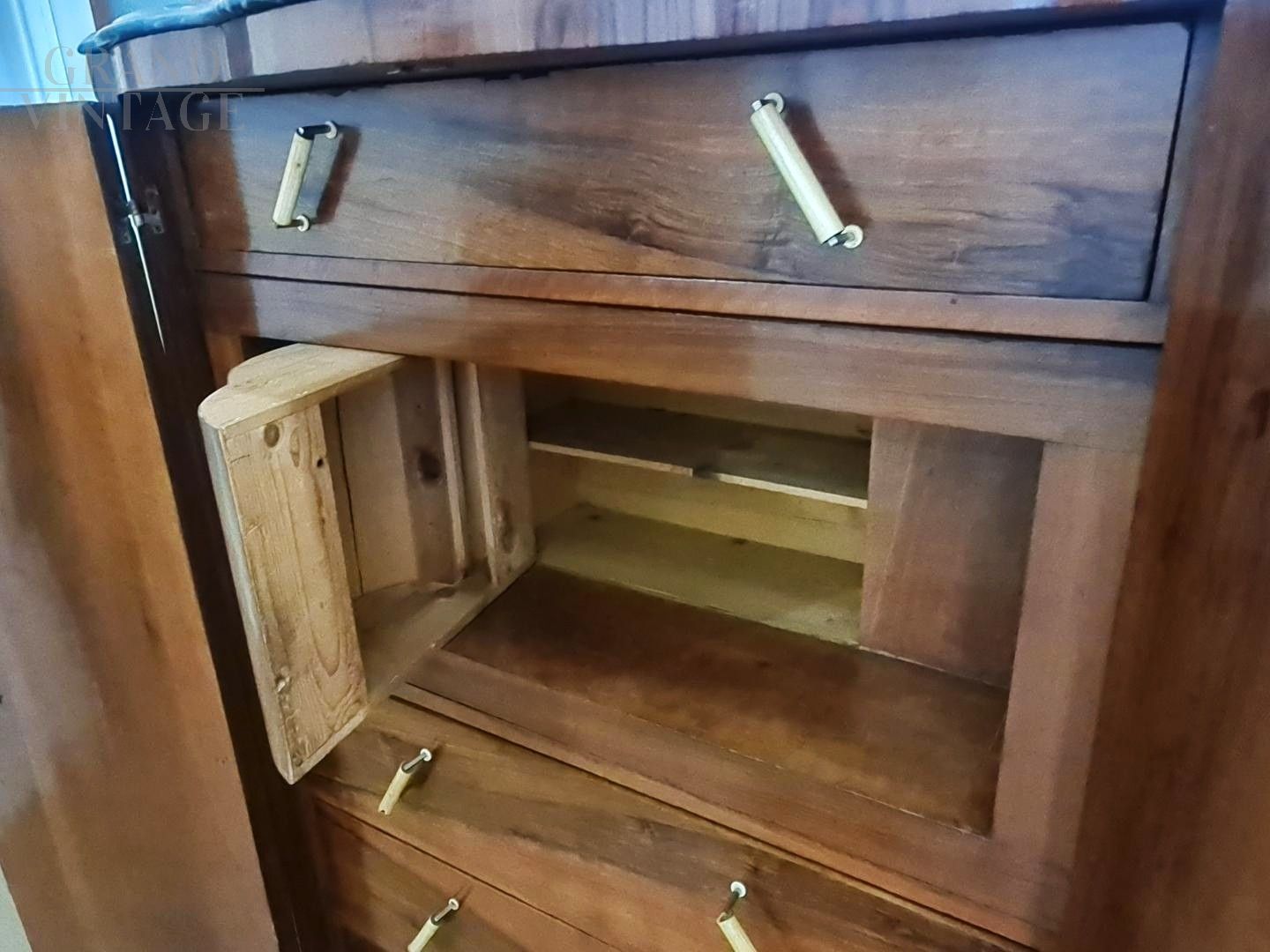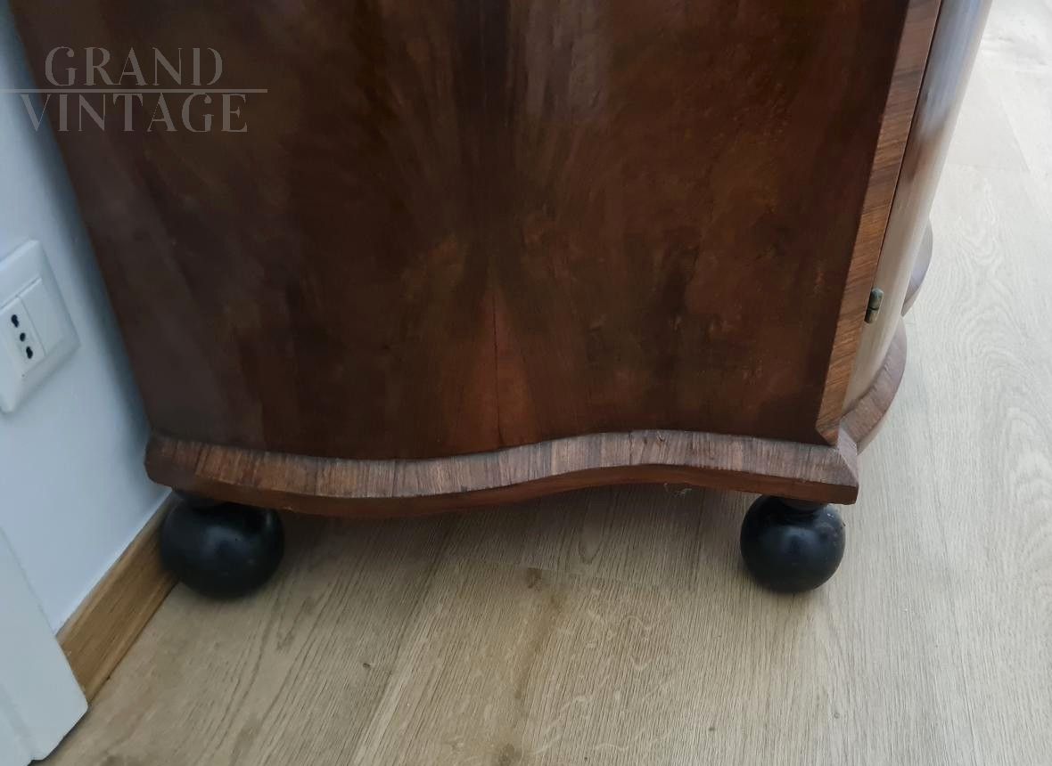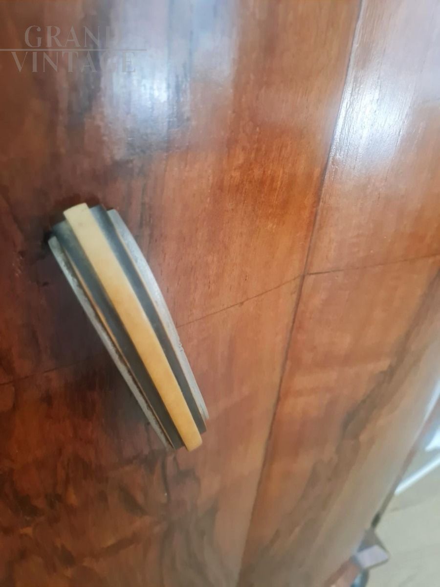 Comò secretaire art déco in radica di noce con cassetti interni