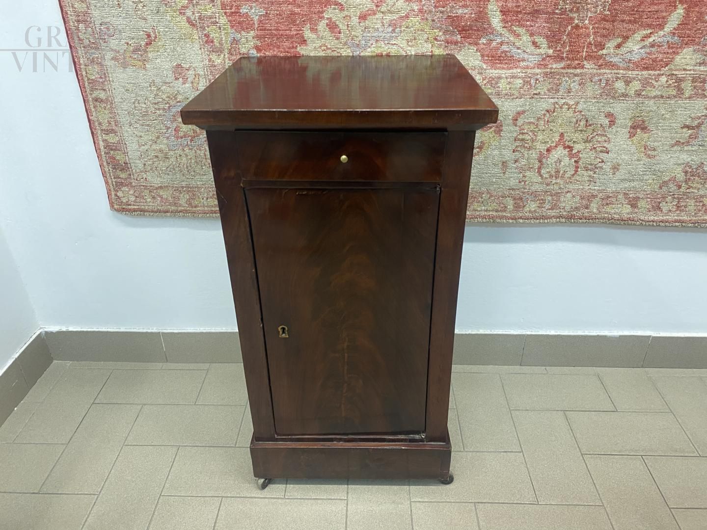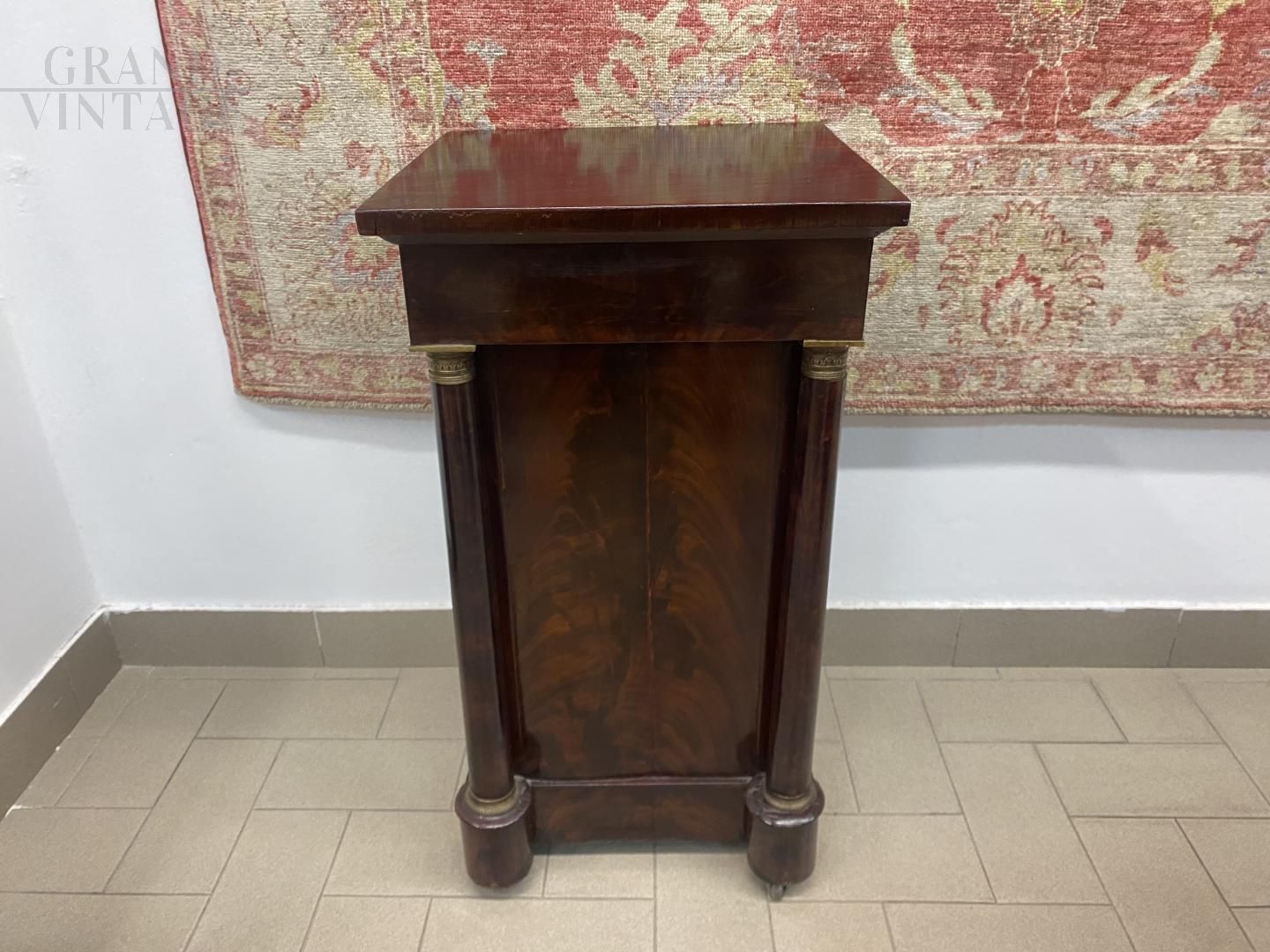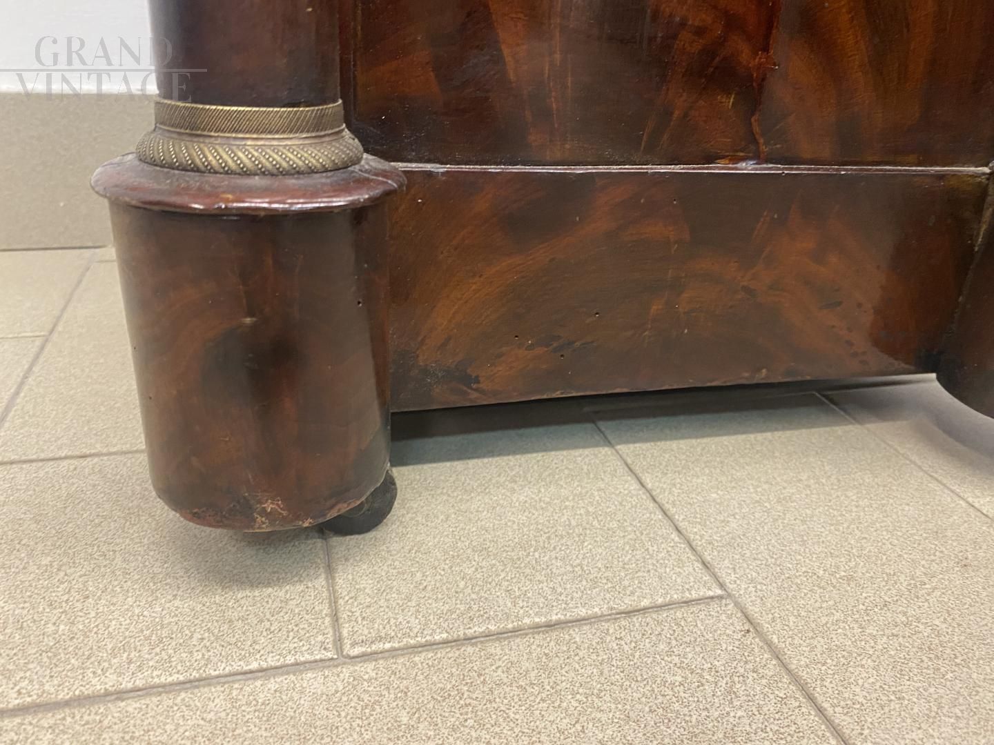 Comodino Impero da centro in piuma di mogano, Francia XIX secolo