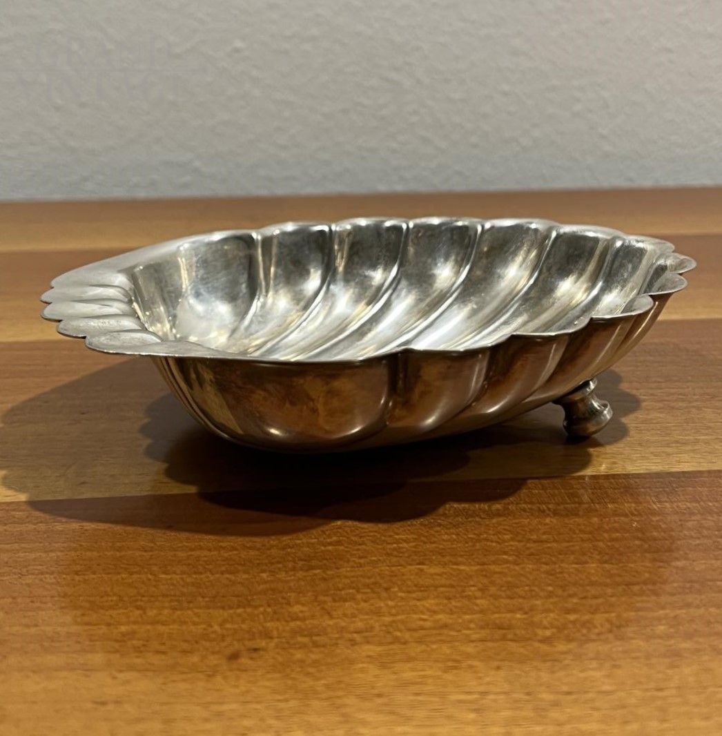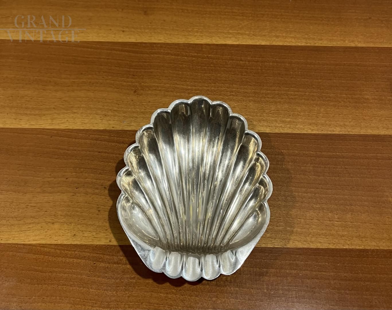 Antica e pregevole conchiglia in argento, adattata in epoca successiva come oggetto decorativo grazie all’aggiunta di due piccoli piedini. Ideale come oggetto ornamentale, svuotatasche, posacenere o porta caramelle. Marchio dell’argento e dell’argentiere incussi.