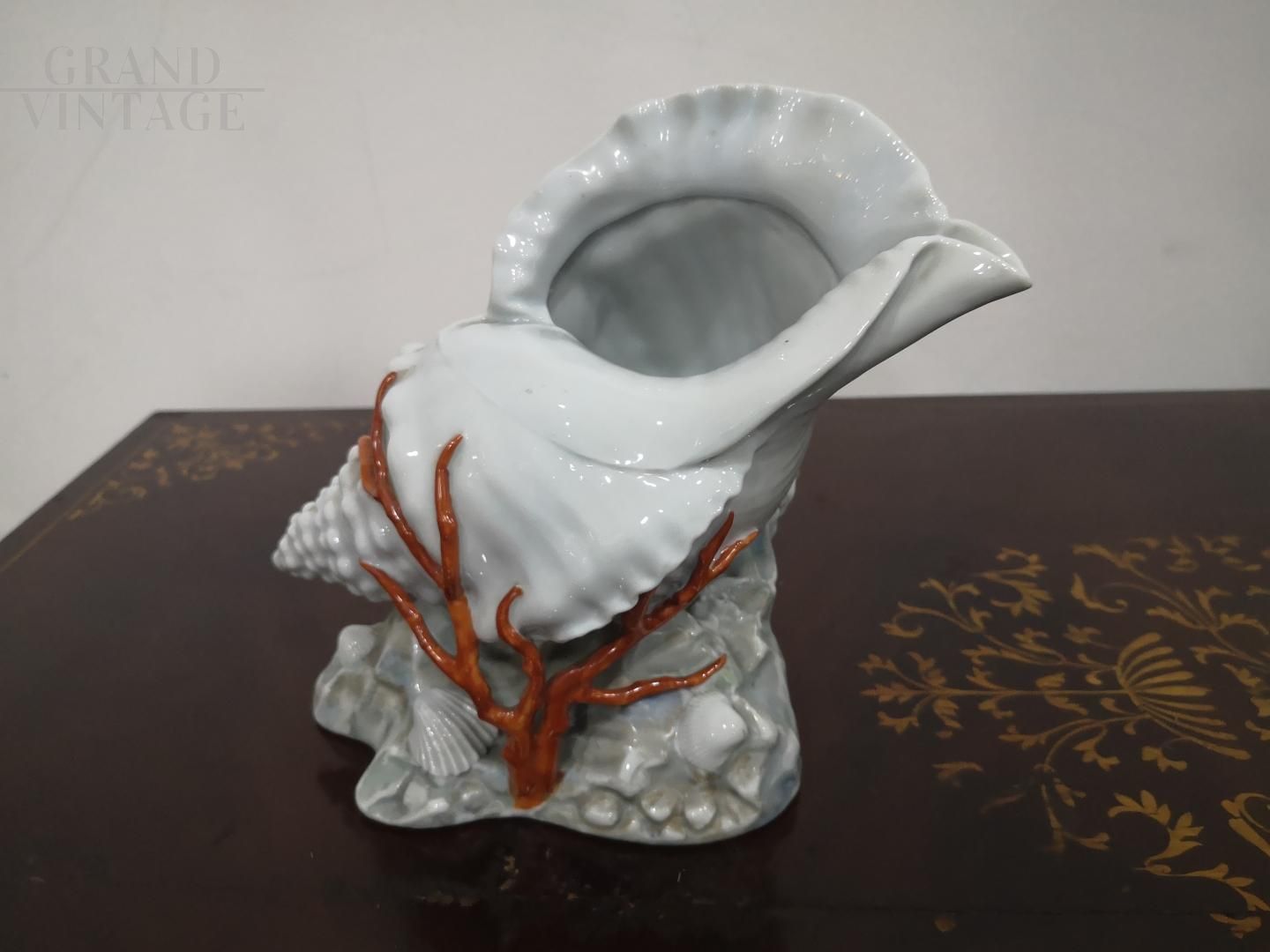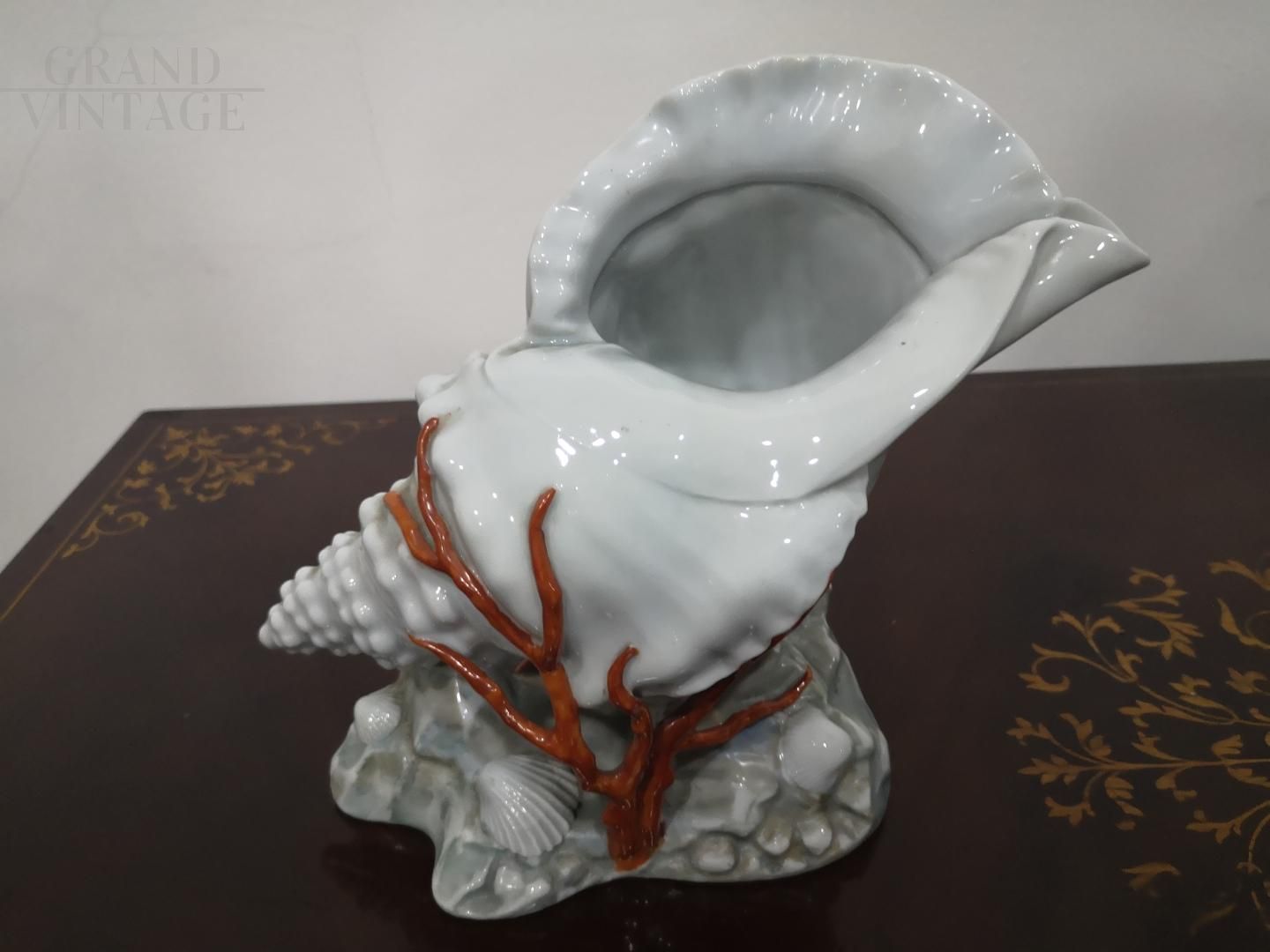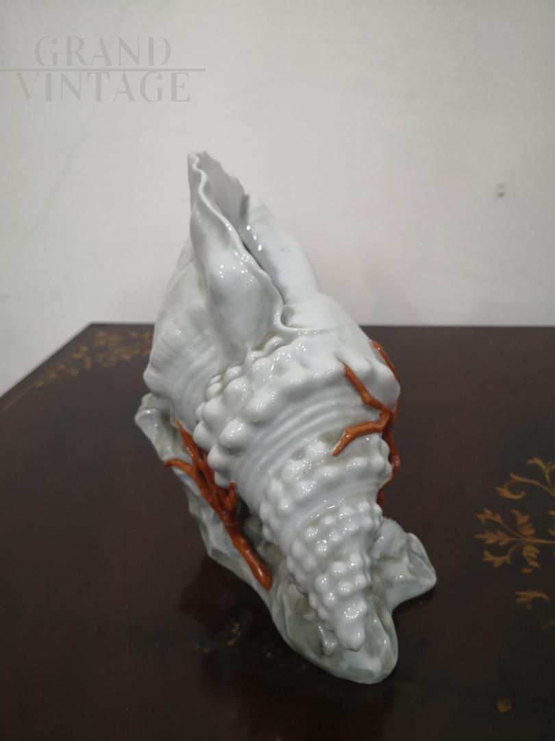 Conchiglia in porcellana di Capodimonte con corallo dipinta a mano