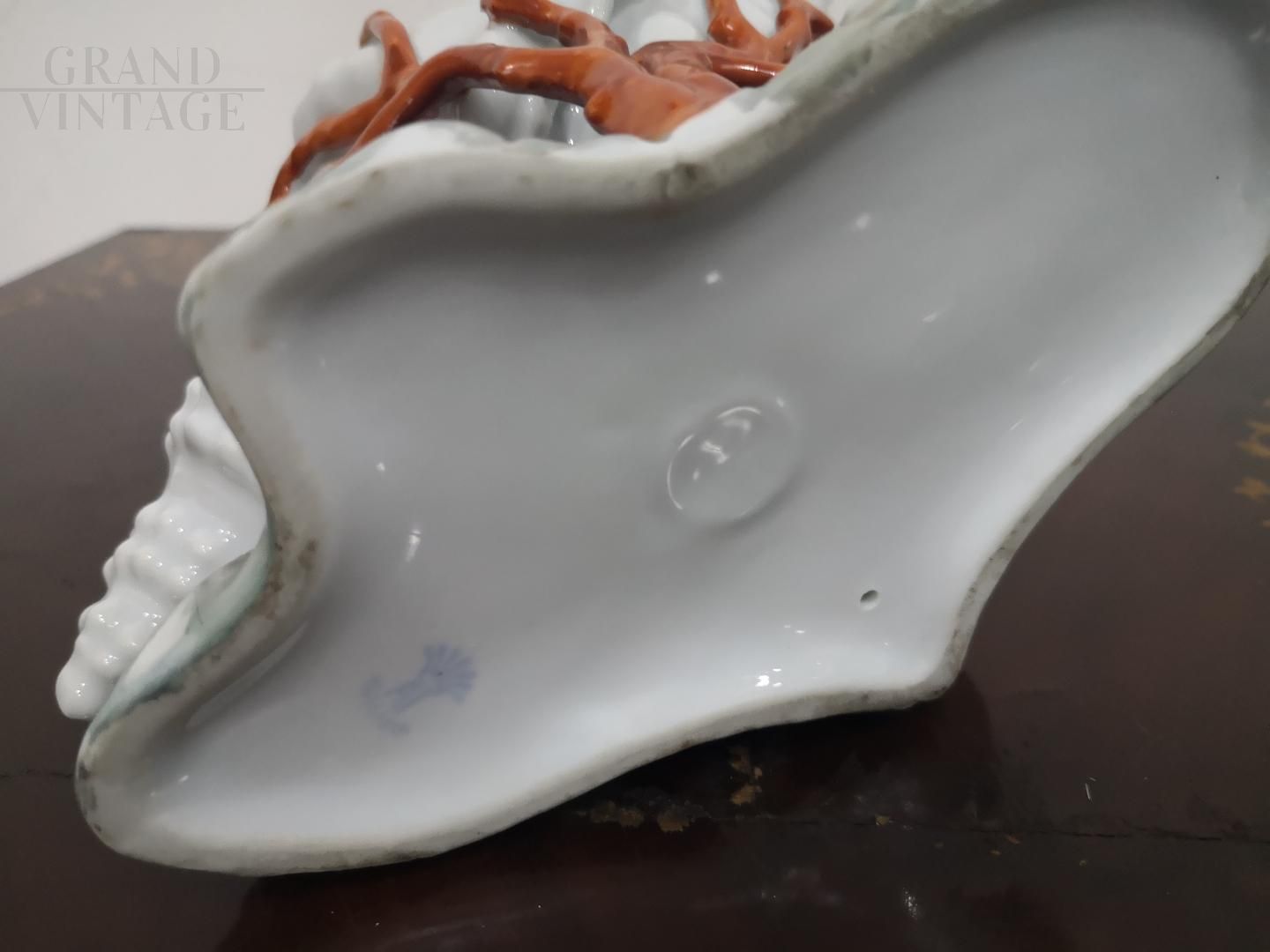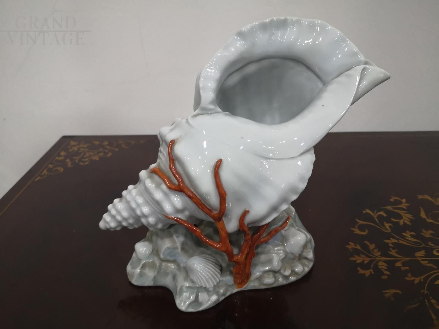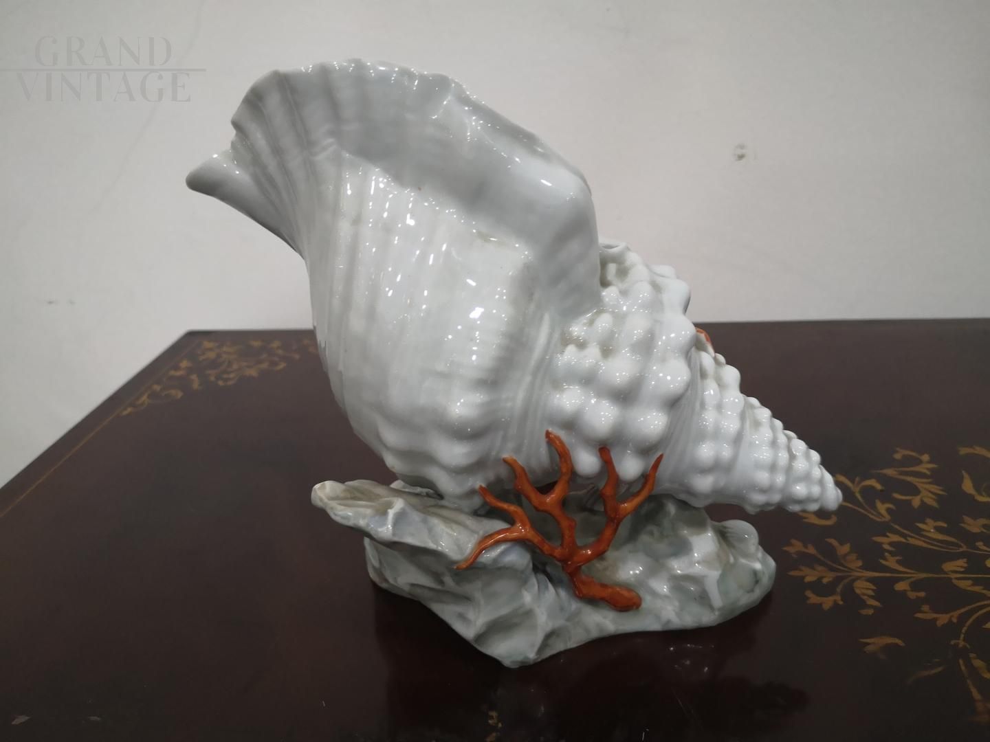 Conchiglia in porcellana di Capodimonte con corallo dipinta a mano
