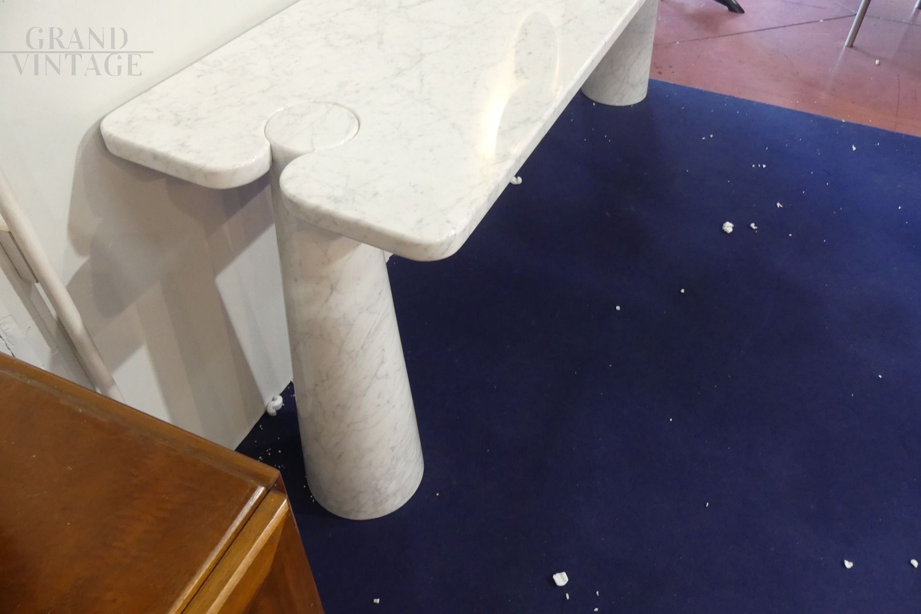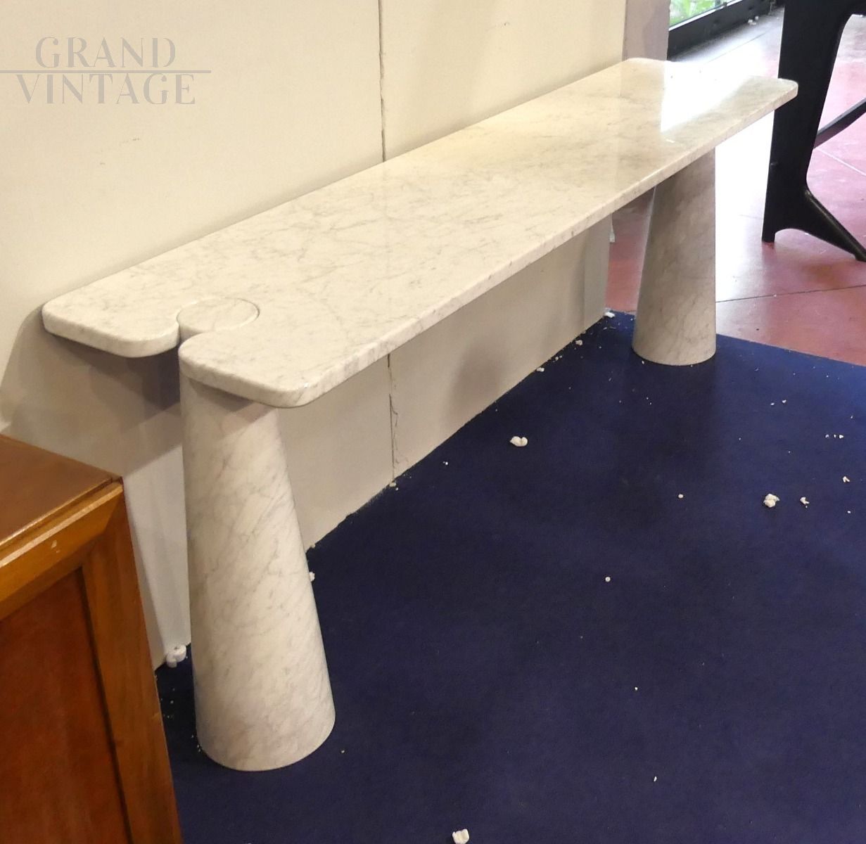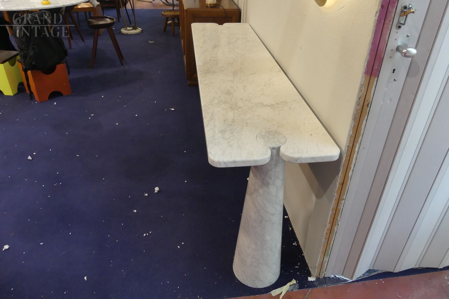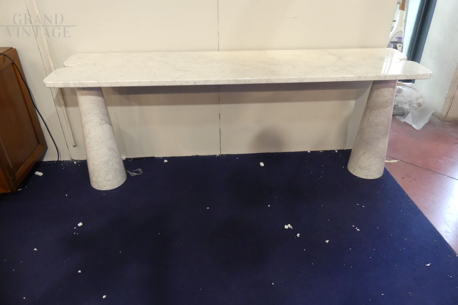 Console di Angelo Mangiarotti in marmo di Carrara con piano rettangolare