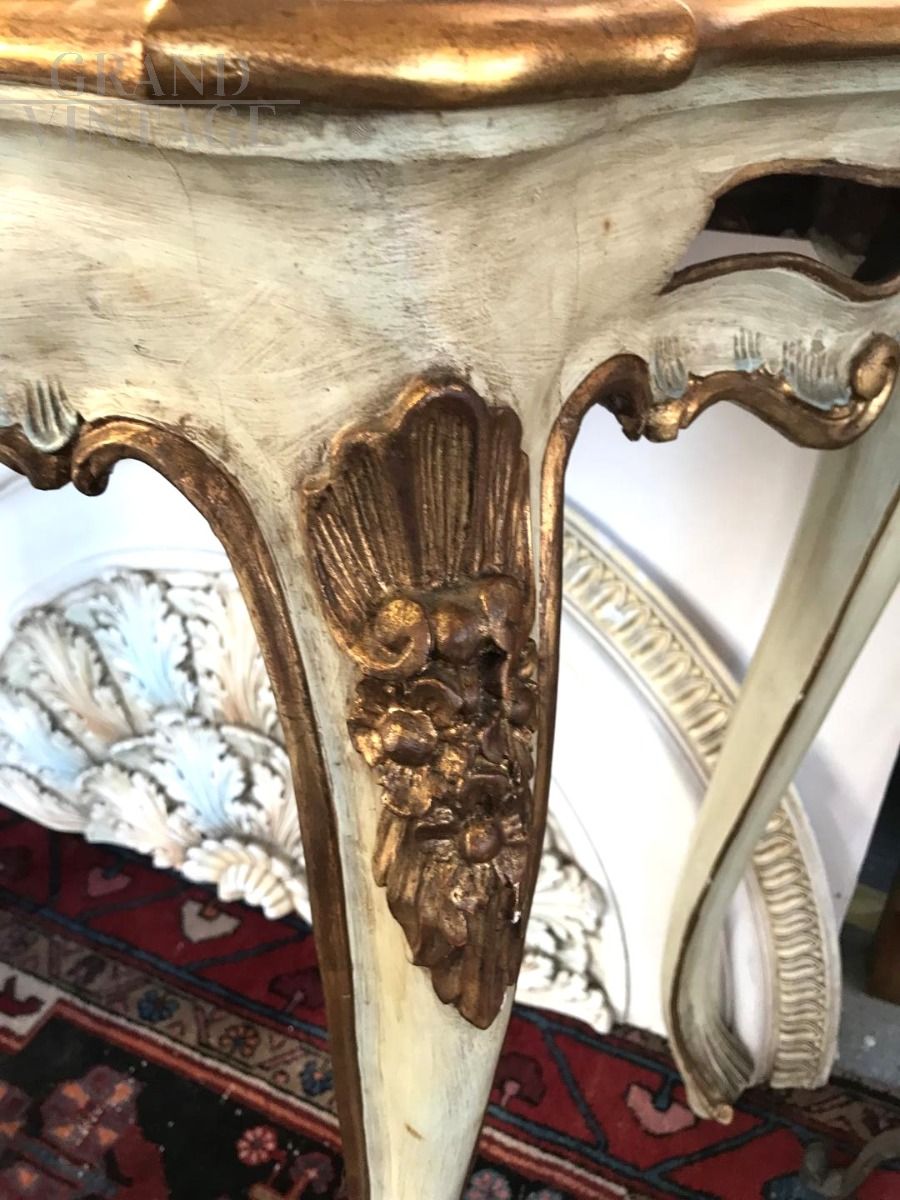 Console in stile barocco veneziano intagliata, dipinta e dorata