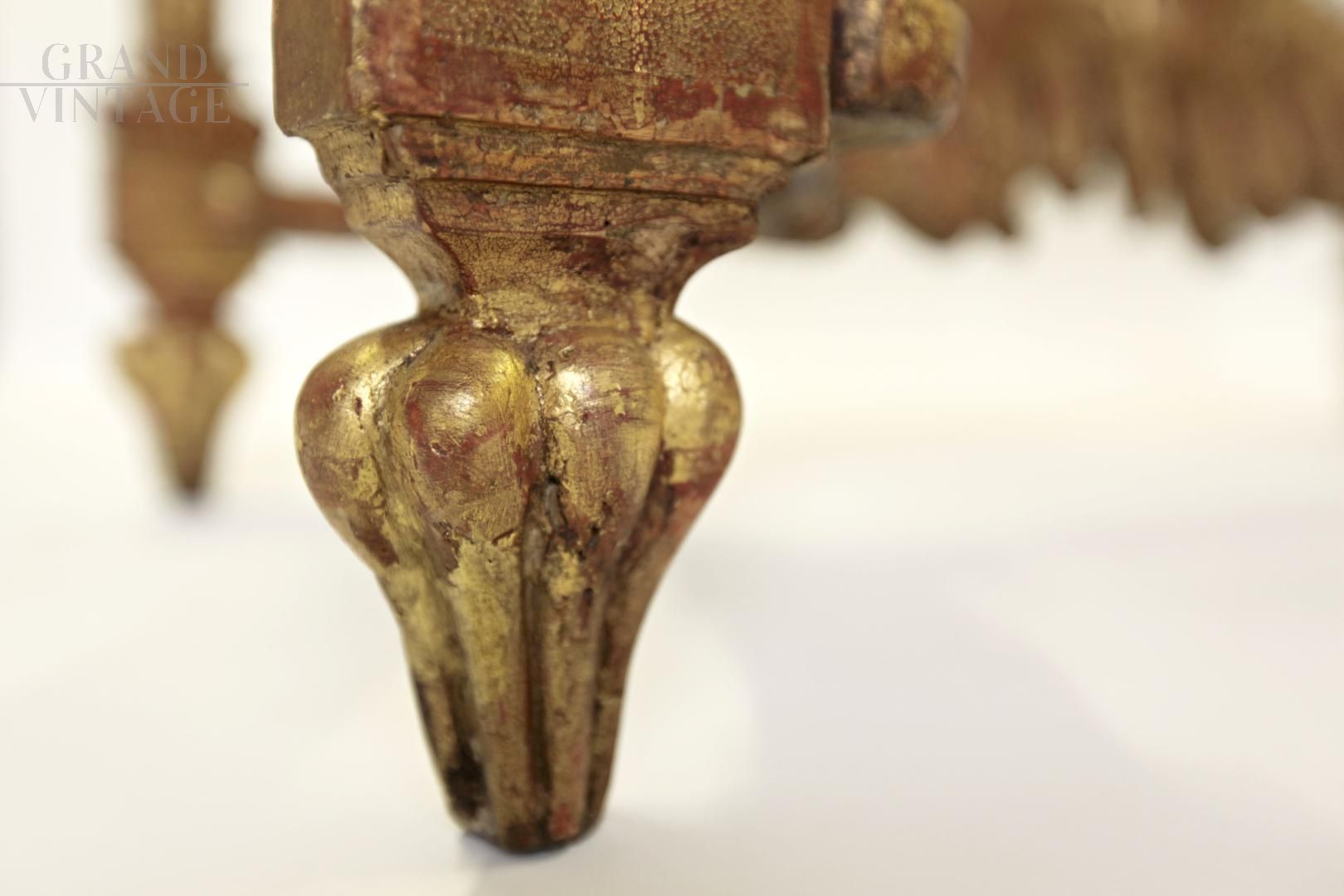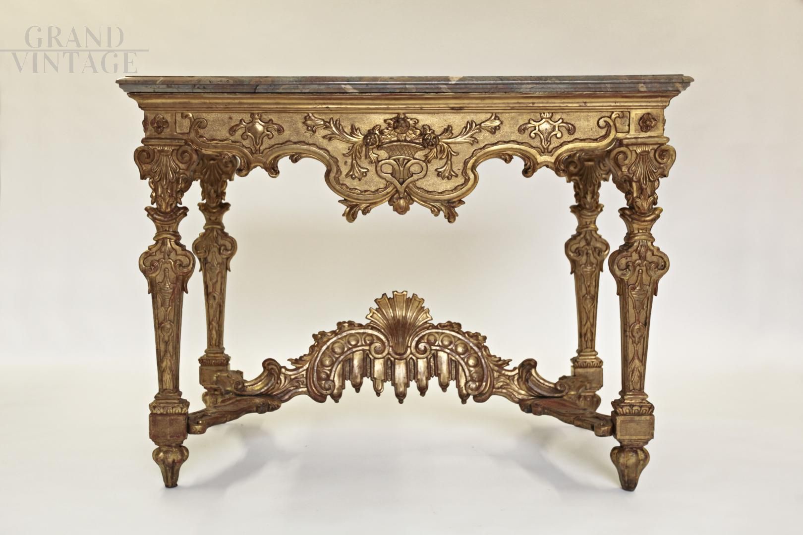 Console Luigi XIV in legno intagliato e dorato con piano in marmo