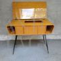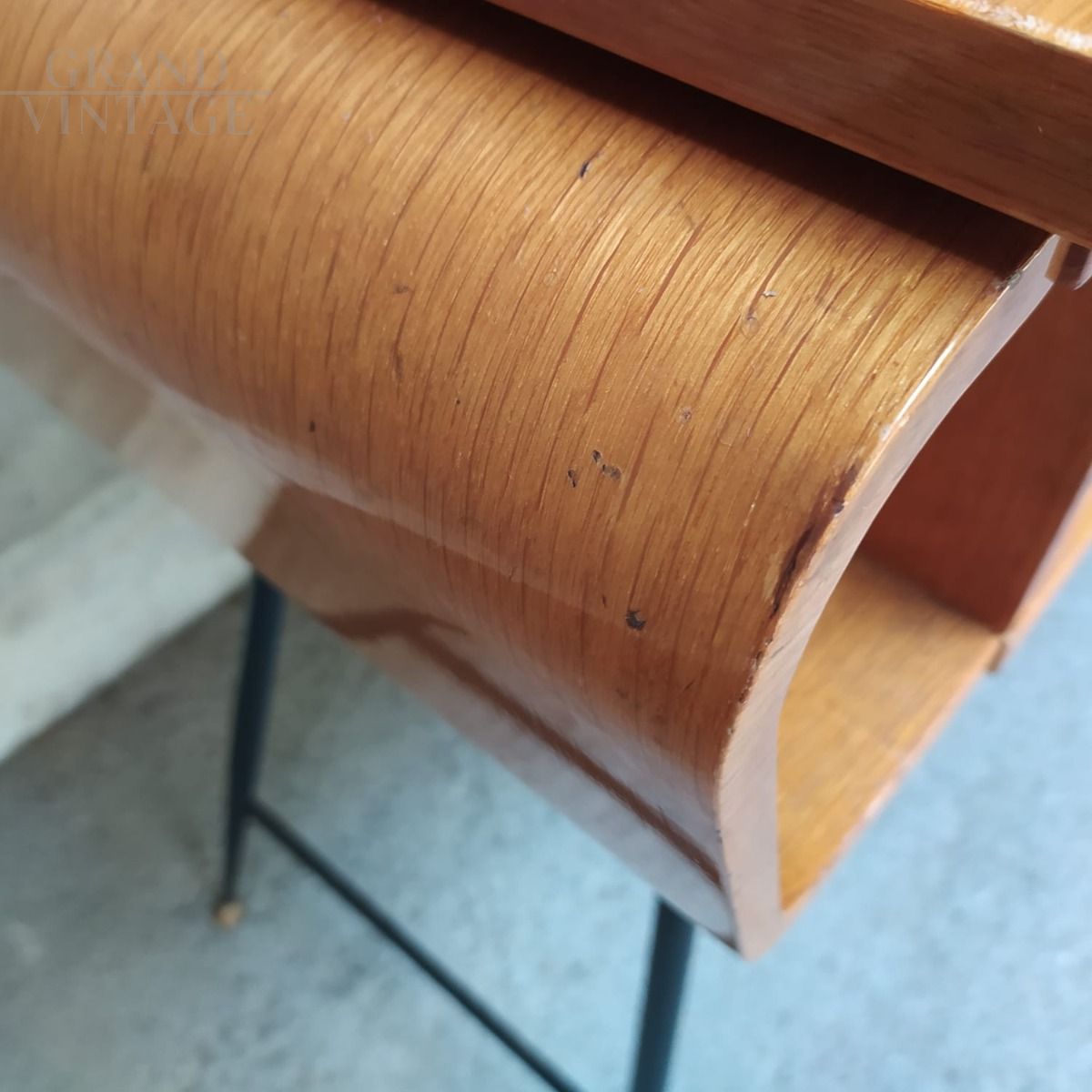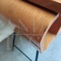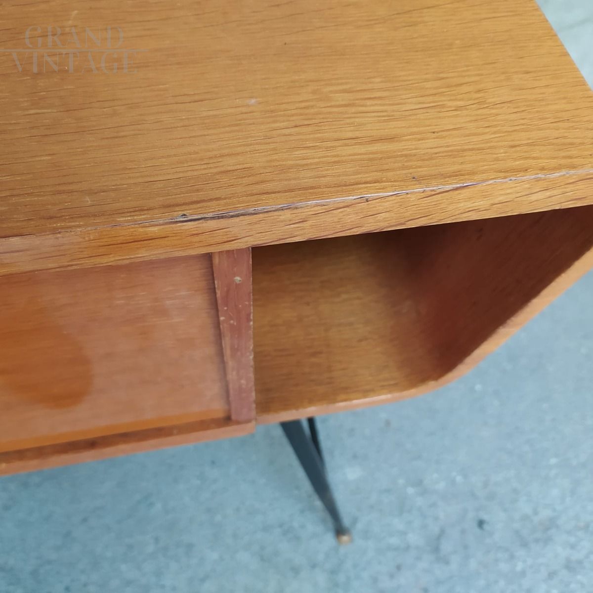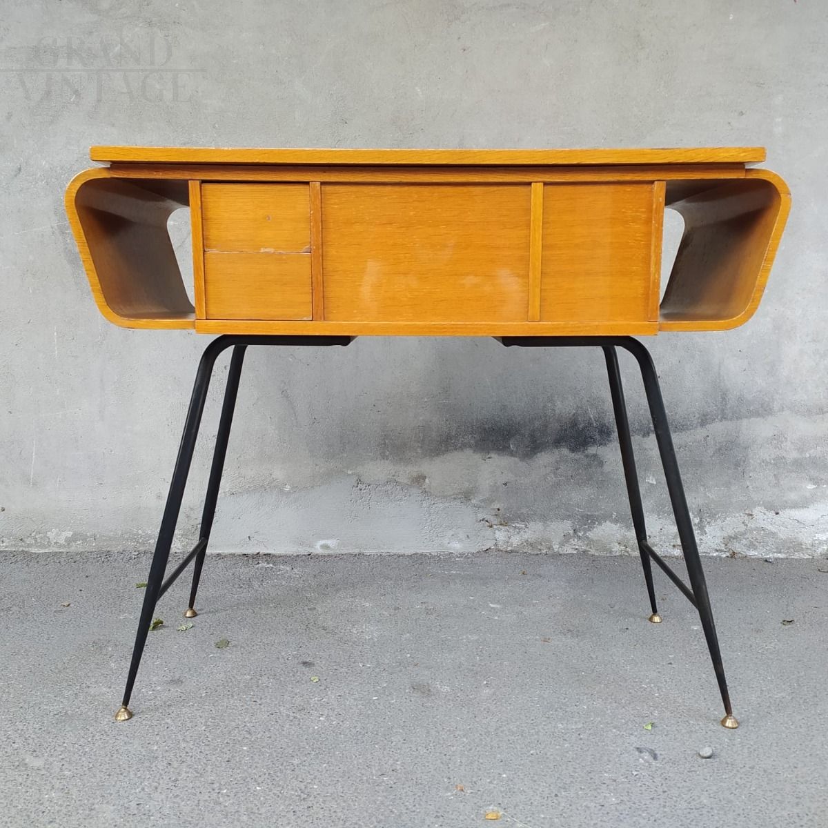 Consolle in legno di rovere con struttura in ottone, originariamente utilizzata per contenere una macchina da cucire Singer.