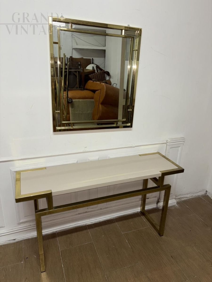 Consolle da ingresso con specchio in stile Romeo Rega in ottone dorato, di ottima qualità, design italiano anni '80