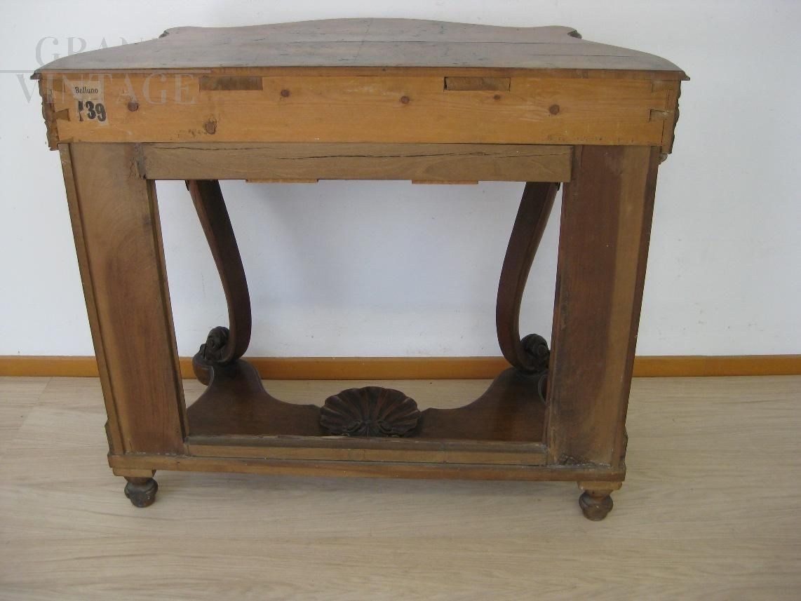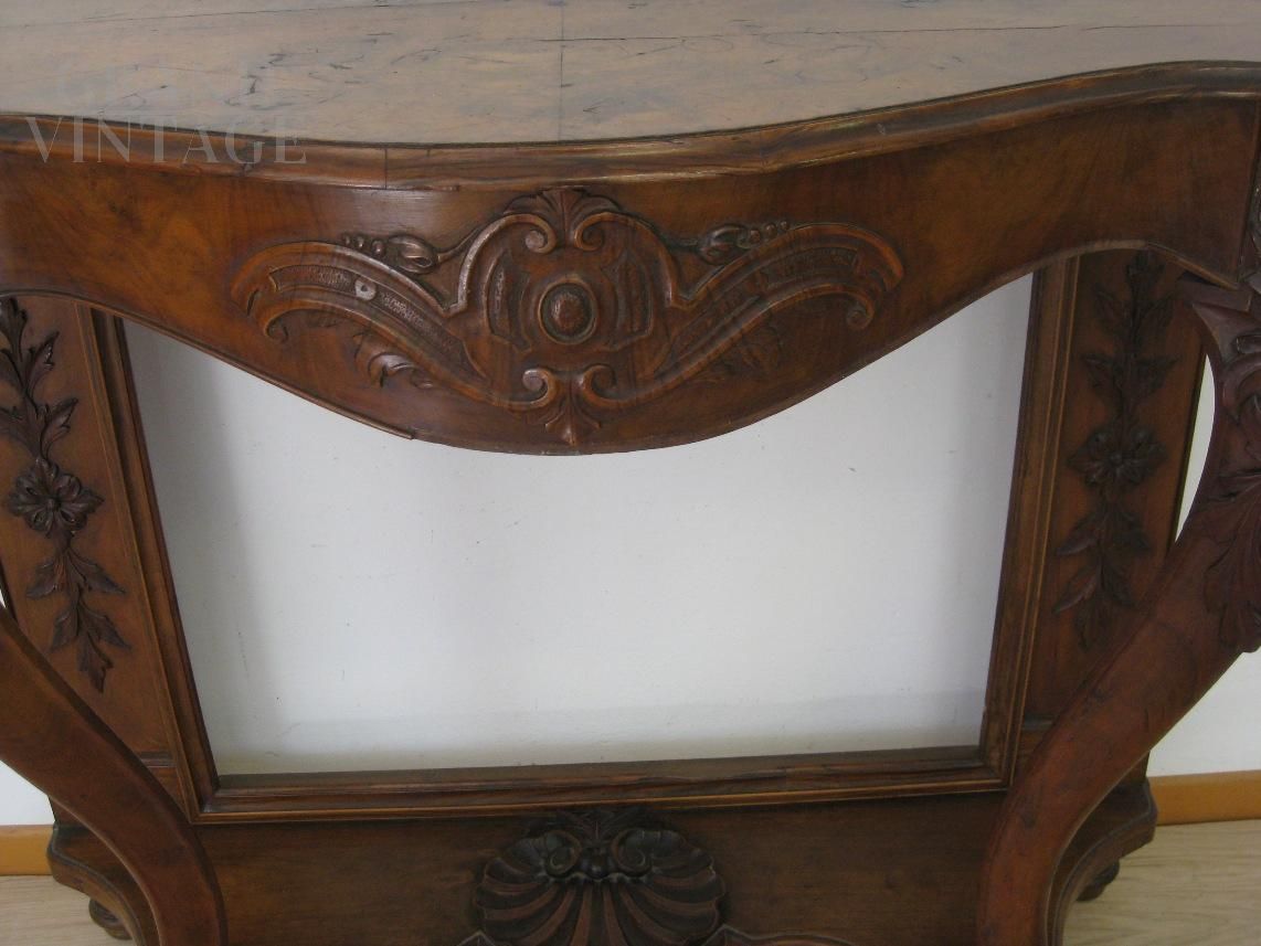 Consolle in legno di noce della fine dell'800 finemente intagliata, ottimo stato di conservazione, in patina originale.