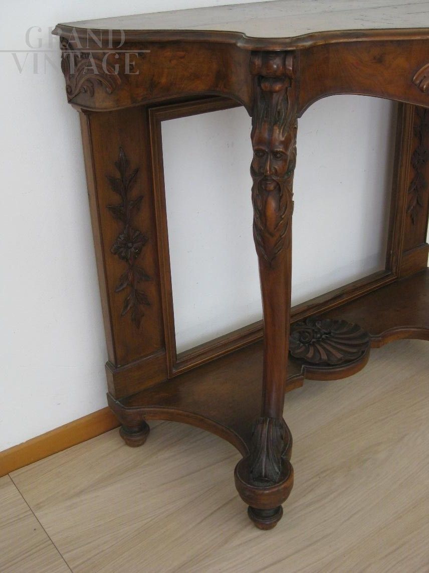 Consolle antica intagliata in noce, fine '800