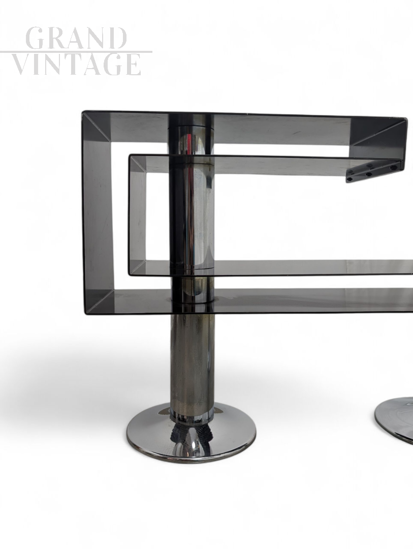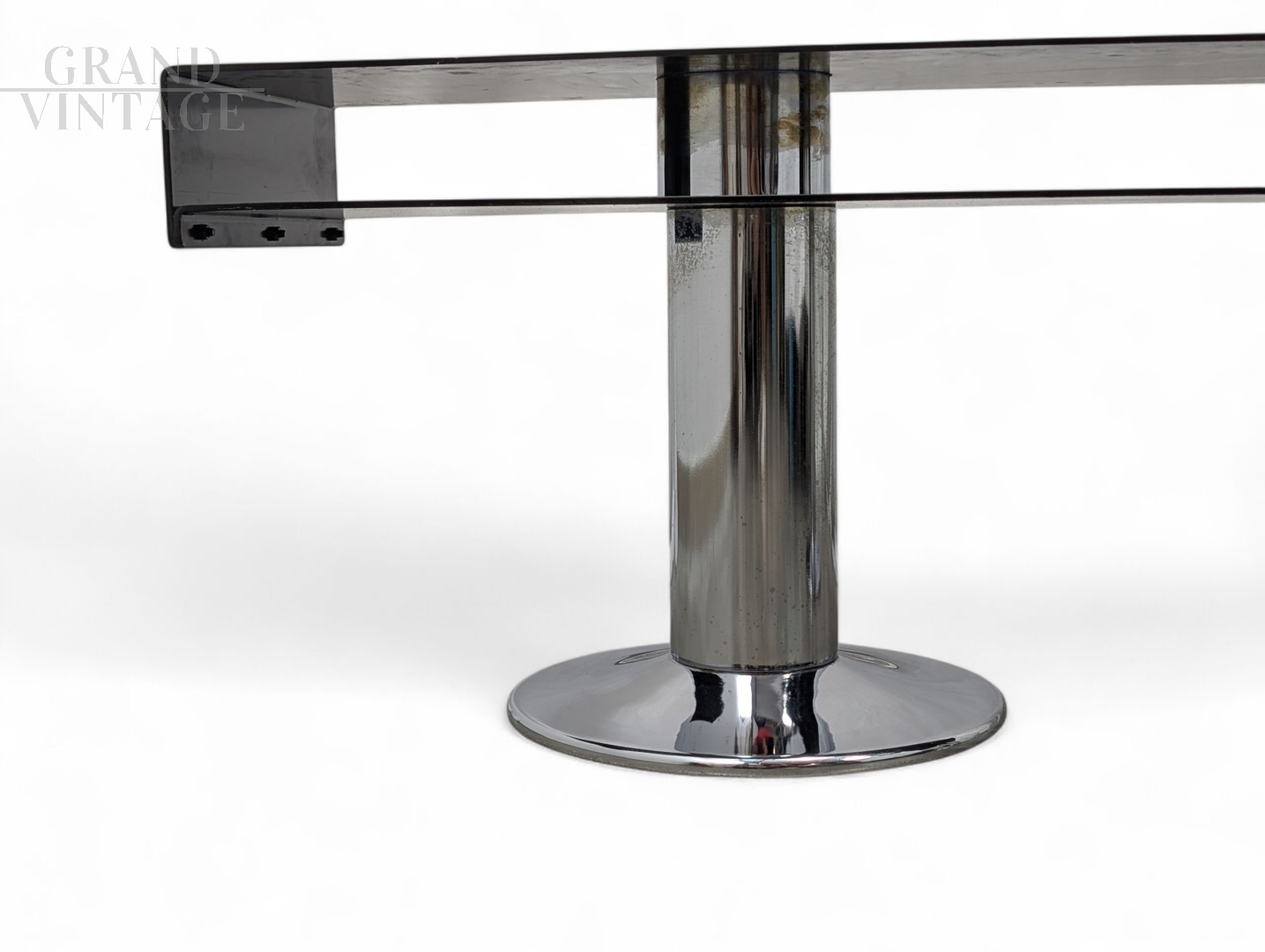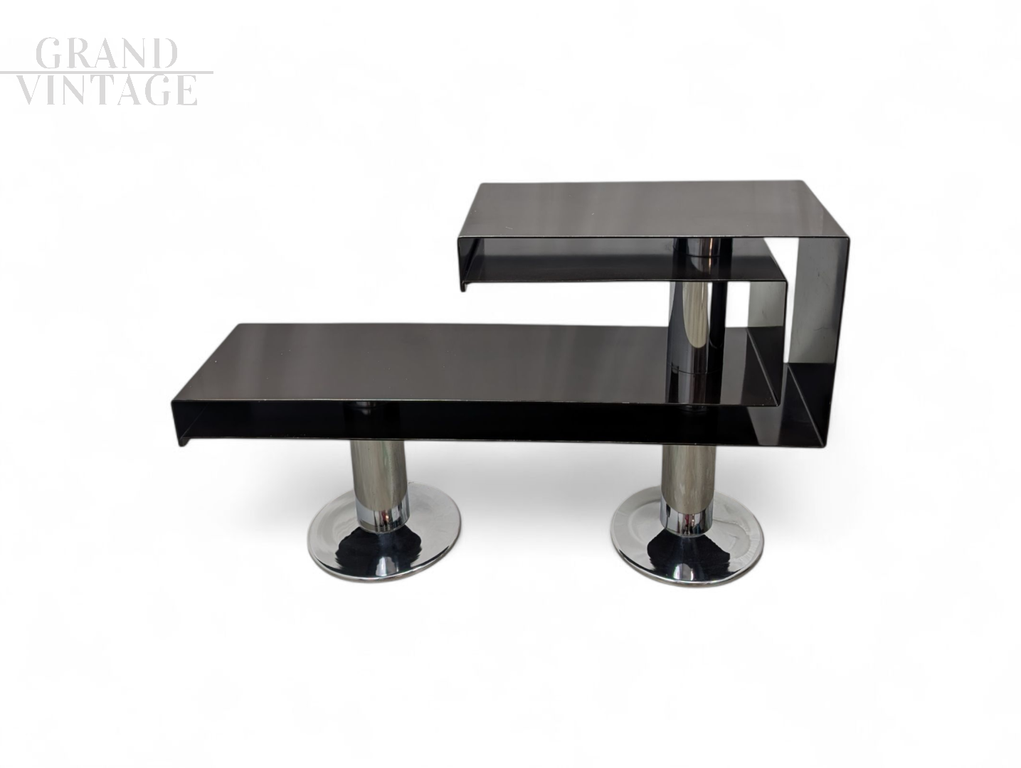 Consolle o scrivania vintage in metallo cromato e nero, anni '70