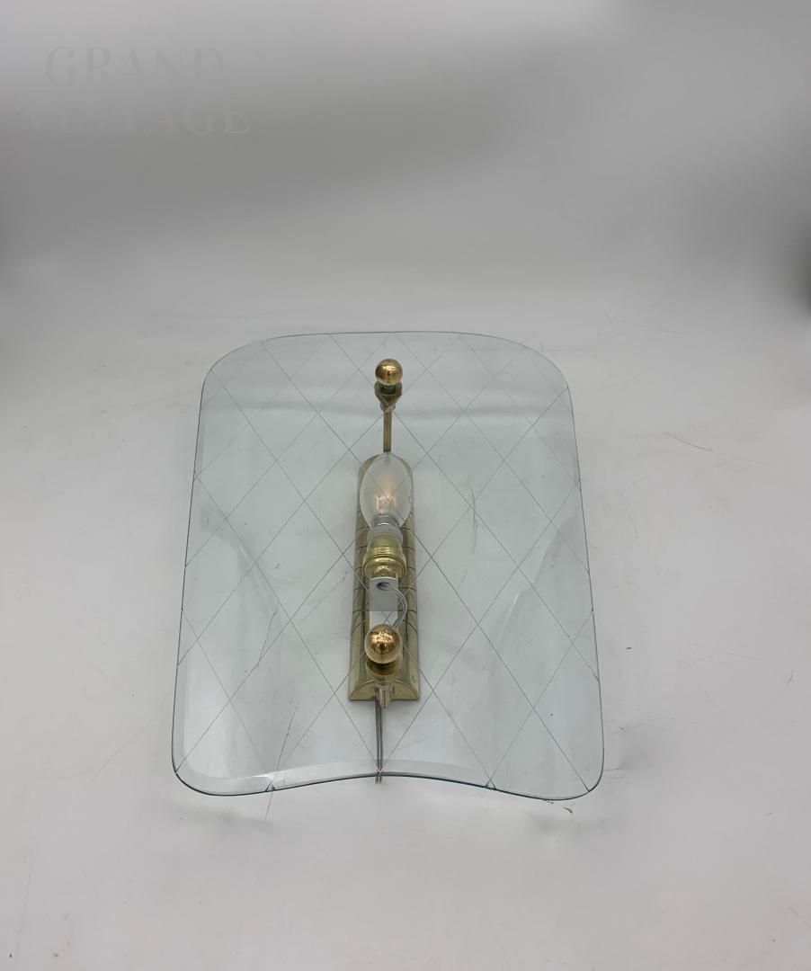 Coppia appliques FontanaArte in vetro lavorato e ottone
