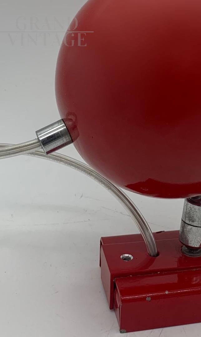Fantastica coppia di applique vintage a faretto attribuite a Reggiani con struttura in ferro e lamiera laccata rossa con dettagli in ottone, Italia anni '70, in magnifico stile Space Age.