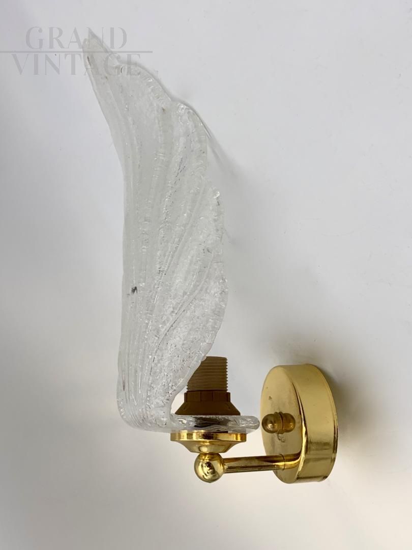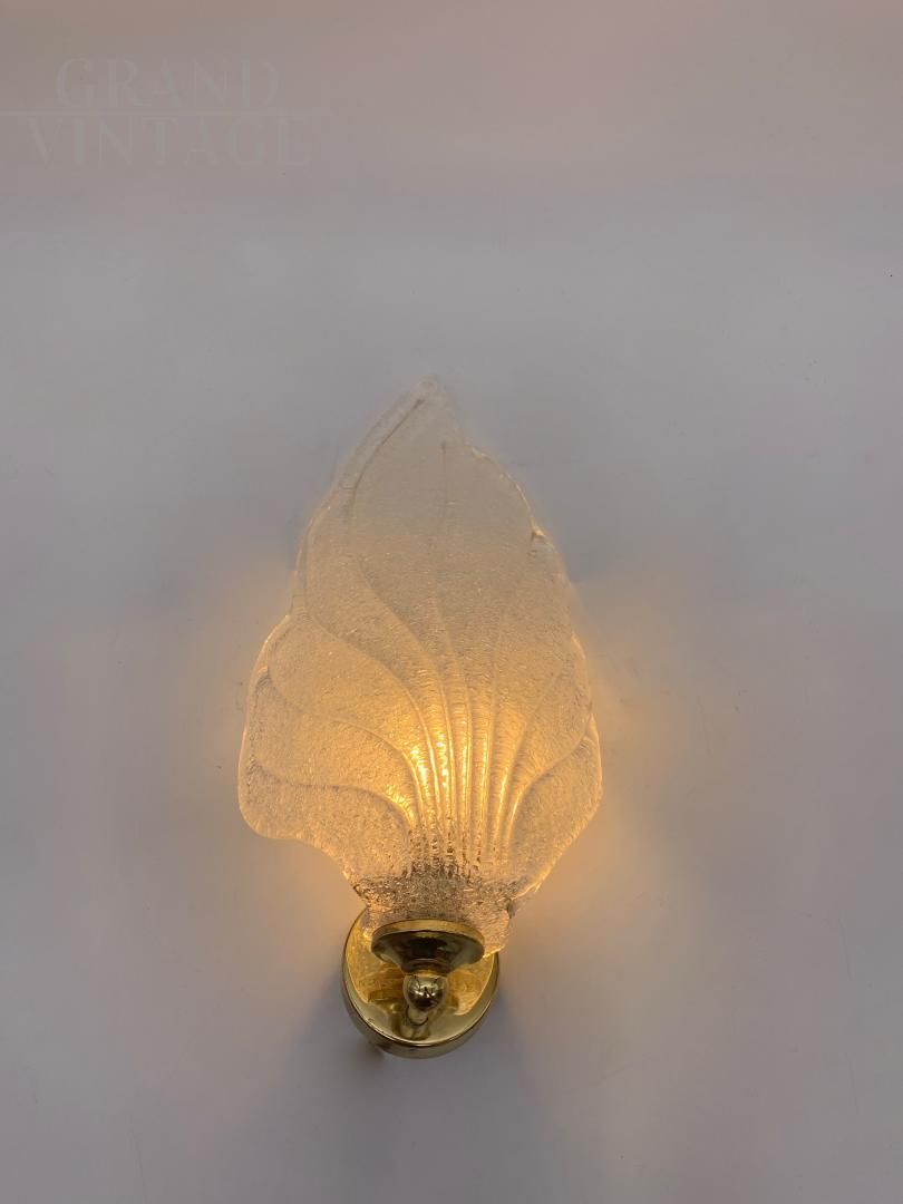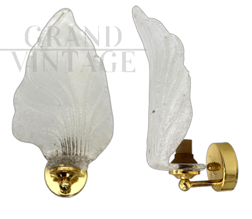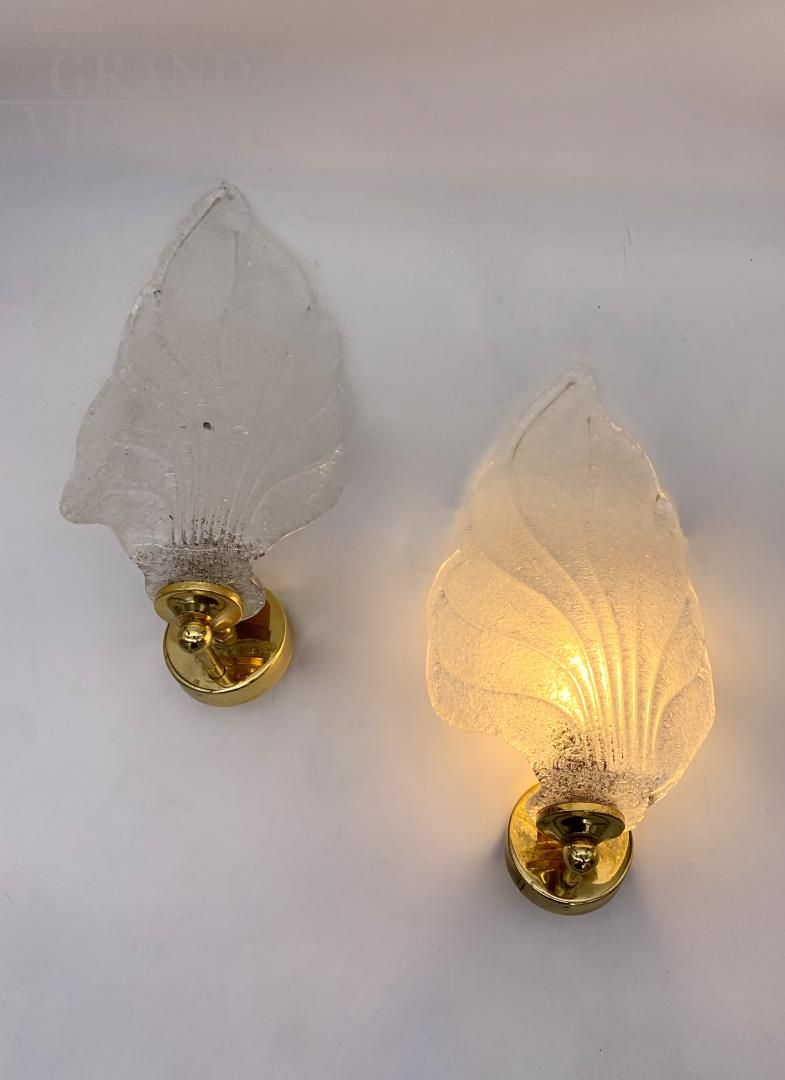 Coppia di applique a foglia in vetro di Murano anni '70 attribuite a Italamp