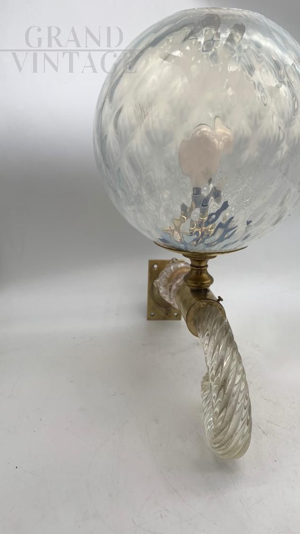 Coppia di applique a sfera attr. Seguso in vetro di Murano e ottone, 1950