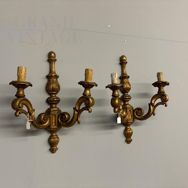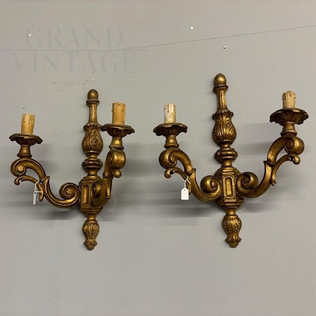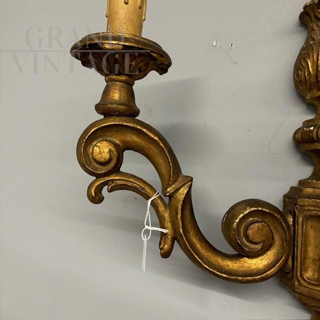 Coppia di applique antiche di metà '800 in legno intagliato e dorato