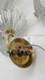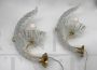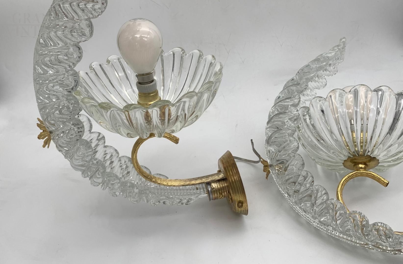 Coppia di applique attr. Seguso in vetro di Murano trasparente e ottone
