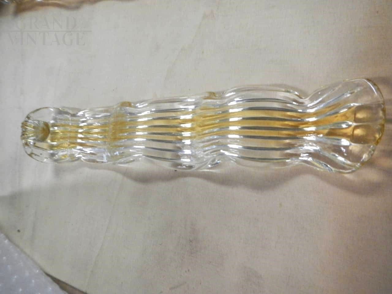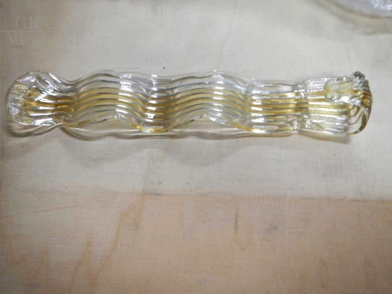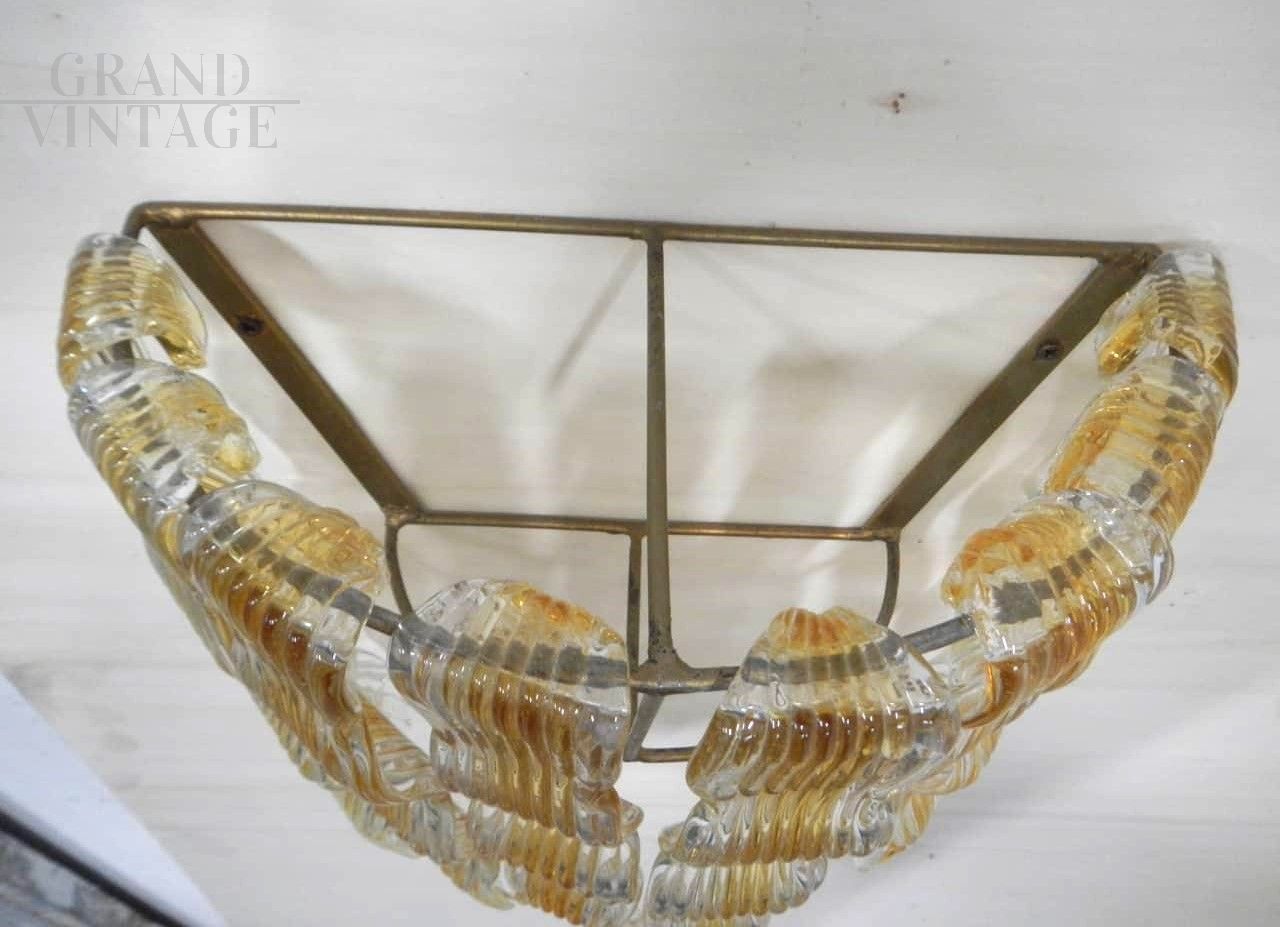 Coppia di applique in vetro di Murano con 8 lastre di vetro ondulato lavorate a mano con colorazione gialla, con supporto in ferro dove appenderle.