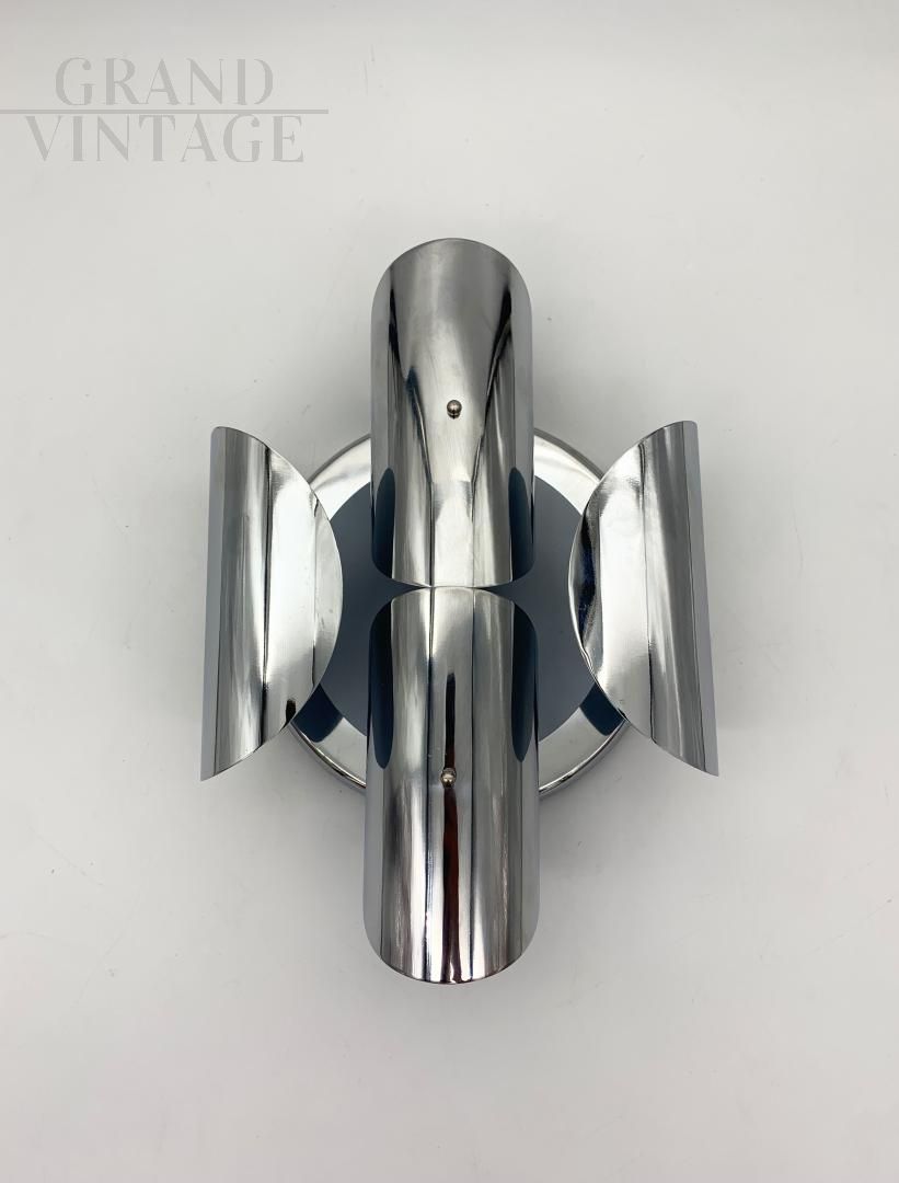 Coppia di applique cromate attribuite a Reggiani, design anni '70