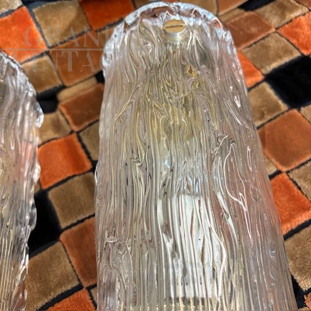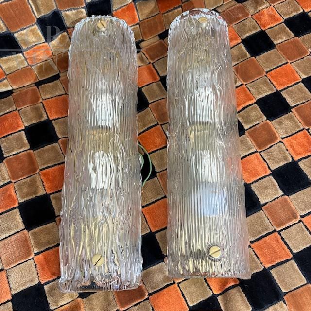 Coppia di applique di Venini in vetro di Murano a corteccia, anni '60